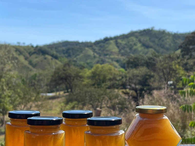 The Finca is home to trees like the famous Guanacaste tree, cedars, cortez amarillo, carao, pochote, guacimo and many others. After the green season comes the blooming season when these trees showcase breathtaking flower displays. Additionally, you'll find wild orchids adorning these trees that release a fragrance during the summer months. This makes it an ideal environment for beekeeping and honey production. Currently, 6 beehives are producing around 30 kg of honey per year with flavours associated with flowers.