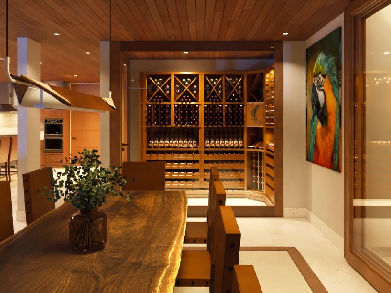 • Air-controlled walk-in wine cellar with 300 bottle capacity