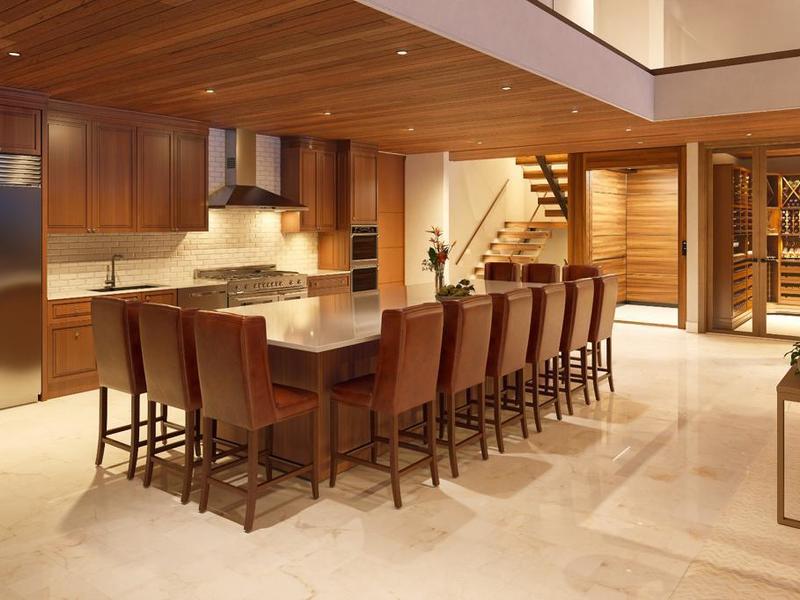 • Viking Professional, 6 burner gas stove, microwave, dishwasher, Subzero fridge, and dual stacked ovens.