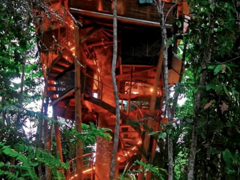 Treehouse is 70 feet up in a tree, sleeps 8-9 guests in the canopy with 360-degree views of surrounding rainforest and monkeys. Elegant and surrounded by exotic wildlife. Featured on Travel Channel, NBC, ABC, Audi Magazine, Home Magazine, and Survivor. All new trails to explore. Fun artesian pool in forest.