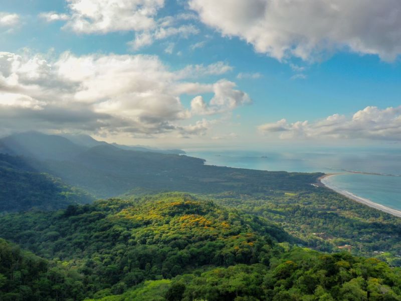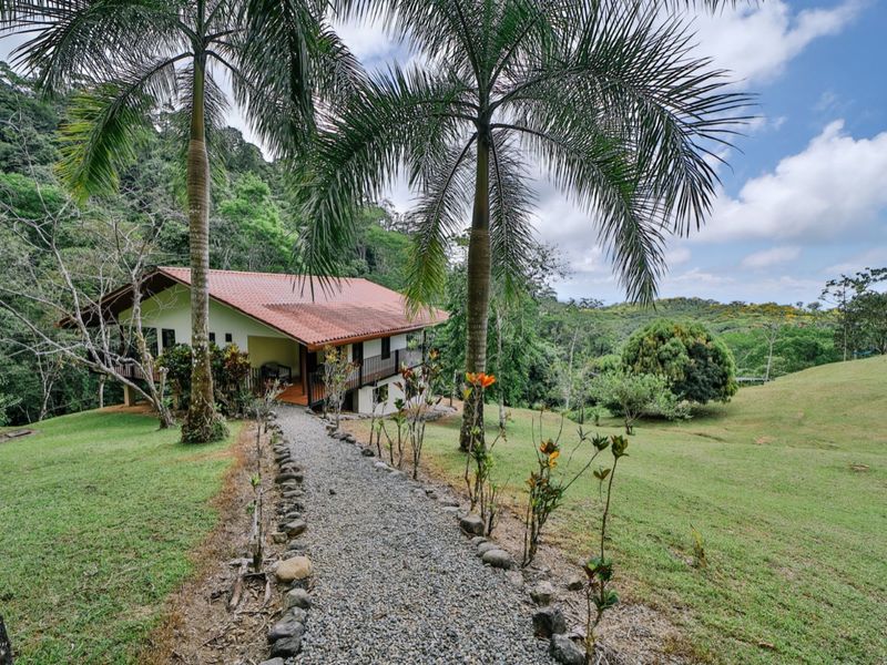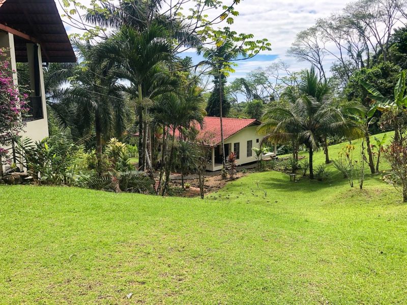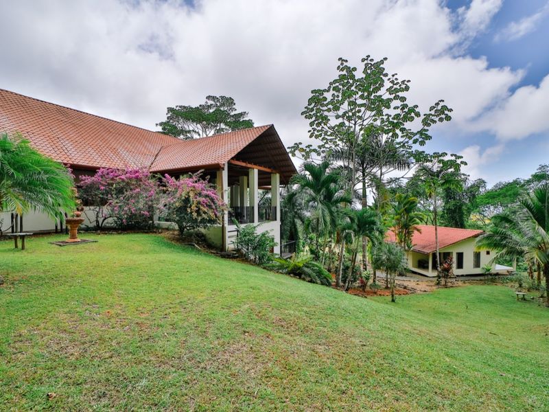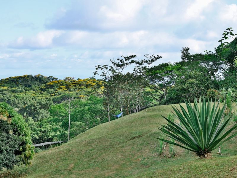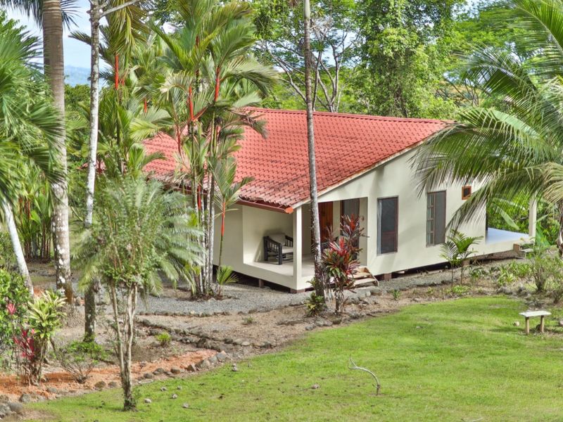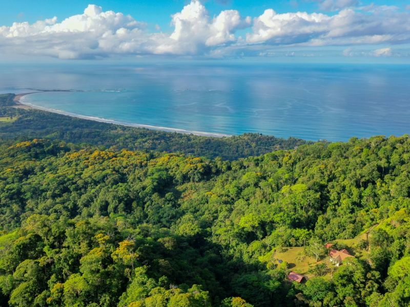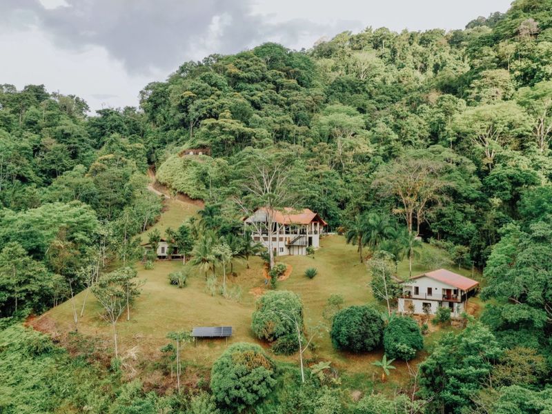 This is an enchanting 50+ acre, self-sustaining property situated at just 10 minutes of the Uvita’s commercial center, and offers spectacular Ocean views from a higher elevation. This beautiful property is surrounded by undeveloped and protected land that has river access and spectacular waterfall views. In order to preserve the pristine natural jungle and all of the wildlife and vegetation that it hosts, only a portion of this expansive land has been developed. Still, there is plenty of room cleared and flattened, ready for expansion.