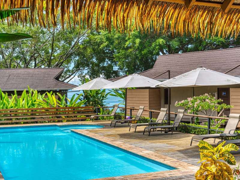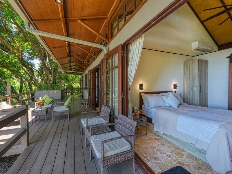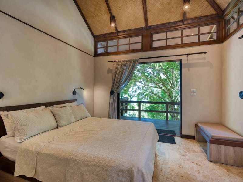 These villas, constructed in 2019 draw inspiration from architectural elements. Each villa comprises two master bedrooms, a equipped kitchen, a front deck offering breathtaking ocean views and high speed internet access for an opulent getaway. Surrounded by gardens these villas provide a haven where you can share your space with capuchin monkeys and other wildlife species. Here you become a participant in natures awe inspiring spectacle.