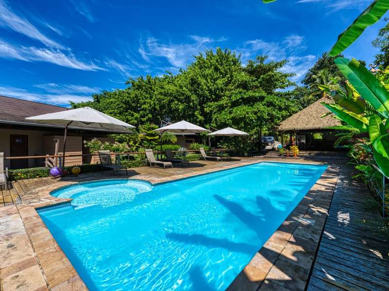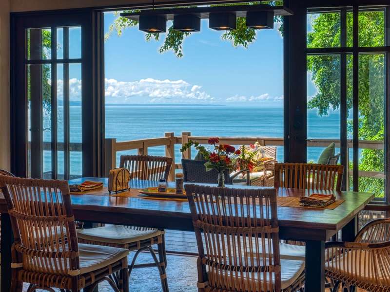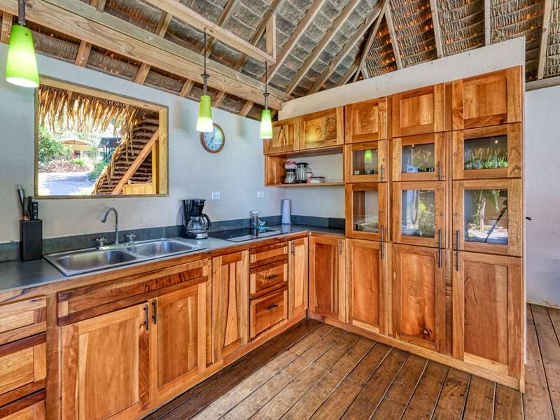 Unwind by the 40 foot pool located on a deck that's perfect, for gatherings. The outdoor experience is further enhanced by a thatched palapa featuring its kitchen facilities – creating unforgettable moments under the warm embrace of the tropical sun. The hotels operations are efficiently managed with the help of a two-bedroom casita and a spacious work shed. Every room offers breathtaking vistas of the Pacific Ocean. Whether relishing invigorating rainfall showers in the master bedrooms or unwinding in the great room area you will be constantly embraced by the majestic presence of the ocean.