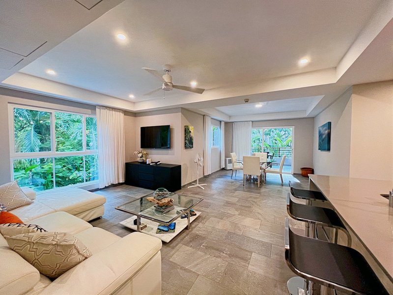 Nestled within a gated community, Elan at Ballena Beach Condos offers a sense of safety, security, and exclusivity, coupled with the finest amenities and features. The 2-bedroom condos are impeccably appointed, each bedroom boasting full bathrooms and walk-in closets, and there's also a half bathroom in the common area. The unit features a full living room, dining room, kitchen, and laundry room, providing all the comforts and conveniences that discerning residents crave. The unit's private terraces offer stunning jungle views, making it a serene and tranquil living environment. No expense has been spared in creating an impeccable living space with luxurious finishes, including Italian tile floors, air conditioners, quartz counters, Bosch appliances, and fine imported furnishings.