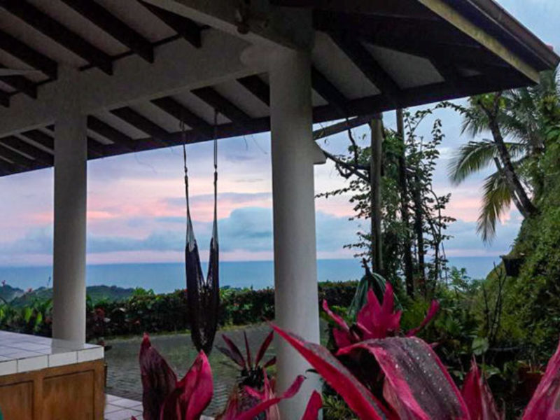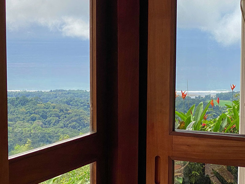 Imagine waking up every morning to a cool hillside breeze and an endless whitewater ocean view of the South Pacific Coast. You can hear the morning wake-up calls from the toucans and parrots, and you can smell the various blooming jungle plants surrounding the property. Being at this property gives you the feeling of living in a jungle dream. The views from the property are majestic–you get a view of the coast stretching from Manuel Antonio all the way to the beginning of the Osa Peninsula.