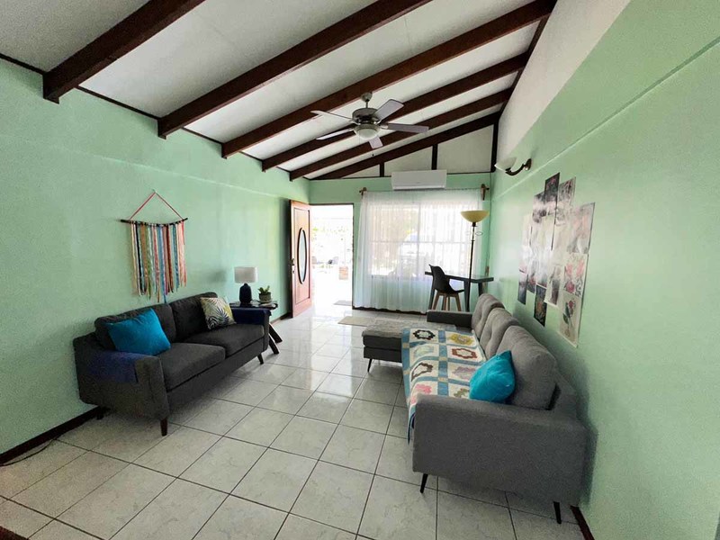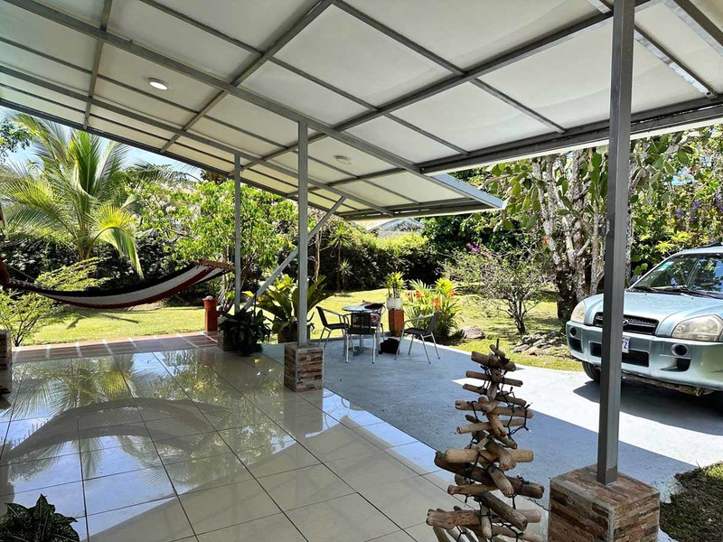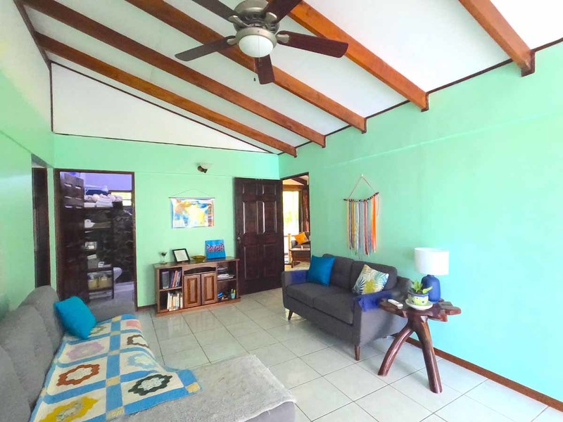 This beautiful house with 2 bedrooms and 1.5 bathrooms is located in the beach community of Matapalo. 25 minutes from Quepos and 15 minutes to the surf beach town of Dominical. A well-landscaped property with fruit trees, plenty of level grassed yard area, great location just steps to the supermarket, bus stops right in front of the property, clinic right next door, police station 50 meters away, restaurants and liquor store just two minutes walk from the house.