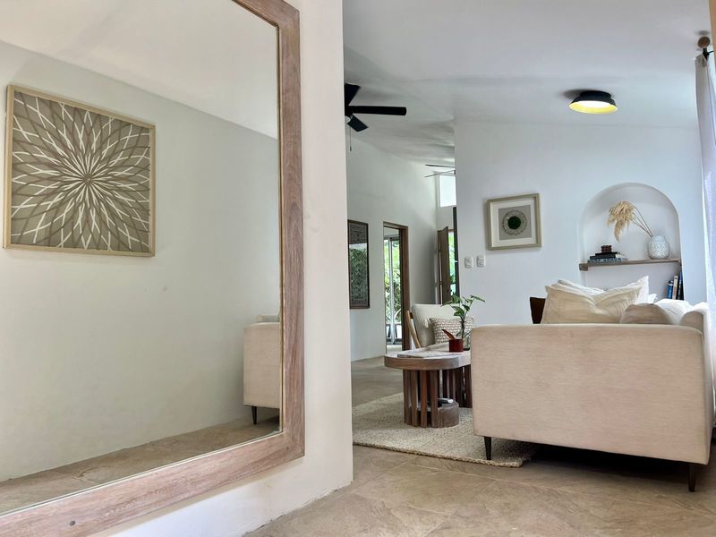 First things first, let's talk about the design of this property. As you enter the fully furnished house, you'll immediately notice its elegance and sophistication. The open floor plan creates a seamless flow that connects every part of the house, providing a feeling of spaciousness and harmony. Designed with designer brands such as Crate and Barrel, every corner of Little Garden Finca showcases contemporary beauty. Not only that, but the imported fans from the US and art pieces from Aspen and Los Angeles add a touch of luxury to the property, making it even more desirable.