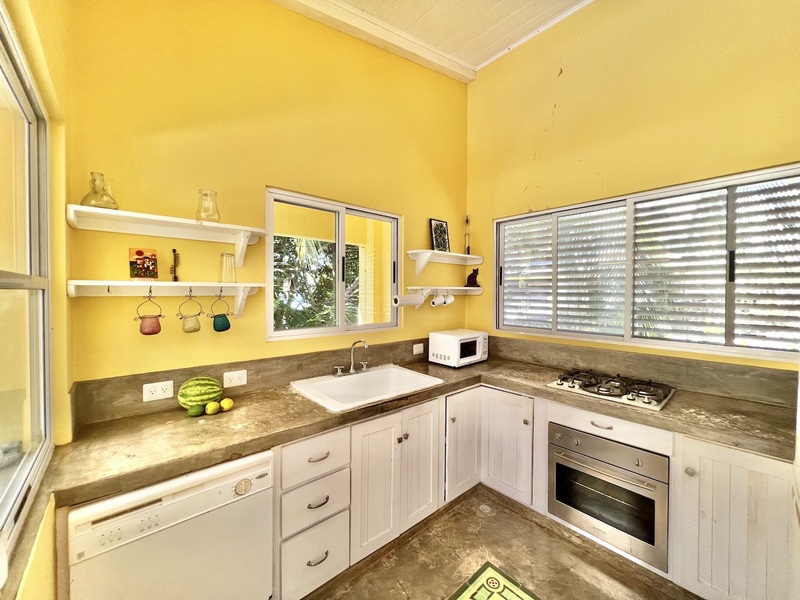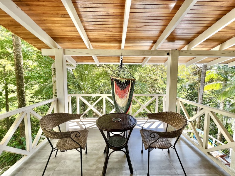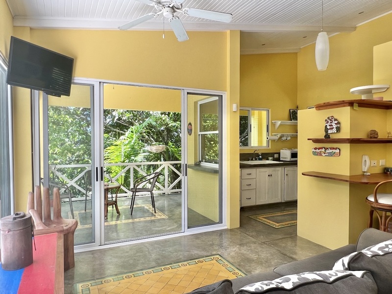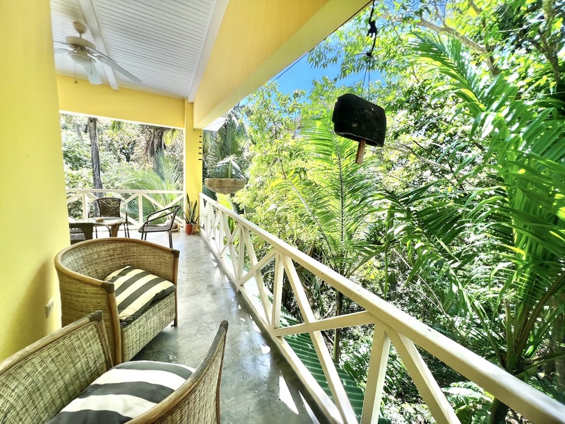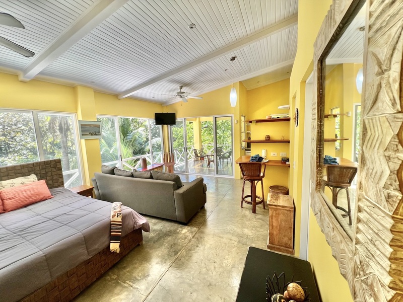 One level below features the second 1 bedroom apartment with extra high ceilings, with a large balcony that extends alongside the entire living area. There is a full bathroom off the living area and an additional full bathroom ensuite off the detached bedroom which also features its own private balcony. For those looking to the home as a vacation rental, the current floor plan allows for 3 individual rental spaces.