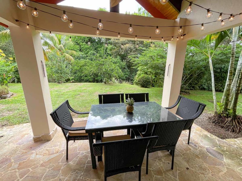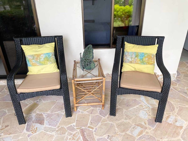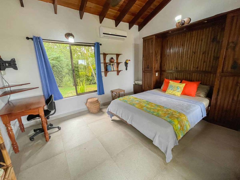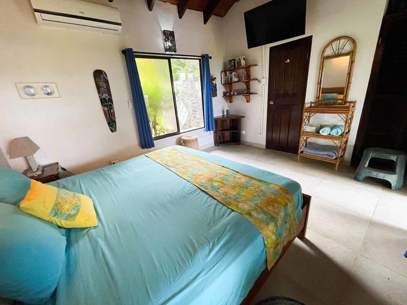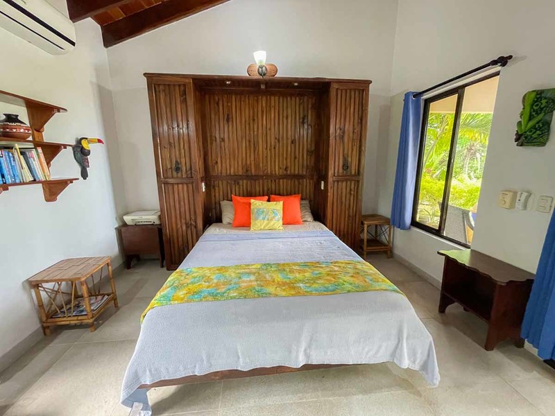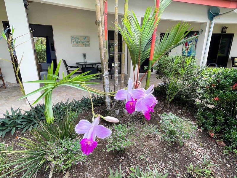 Crossing the threshold into the house brings you into a charming environment, with many flowers lining the path alongside colorful and imaginative decor, and lots of butterfly motifs – an homage to one of the most frequent wildlife patrons of this property. Because of all of the beautiful flowering plants and trees, you will see all sorts of colorfully patterned butterflies flitting around every morning, including Costa Rica’s iconic morpho butterfly.