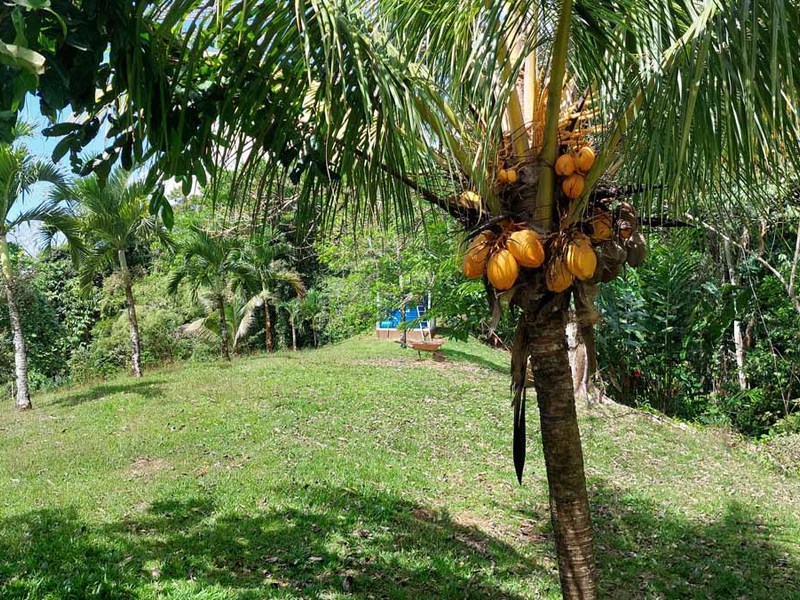 The 13-acre property is beautifully landscaped, starting with the grand gated entrance, plenty of fruit and primary forest, plants, and flowers, providing a peaceful and serene environment. A 13-acre property like this will protect your privacy and ensure solitude. There is also plenty of space for outdoor activities, such as hiking, biking, and horseback riding. This property is truly a paradise, offering the perfect combination of comfort, luxury, and natural beauty. There is also an amazing waterfall at the bottom of the property.