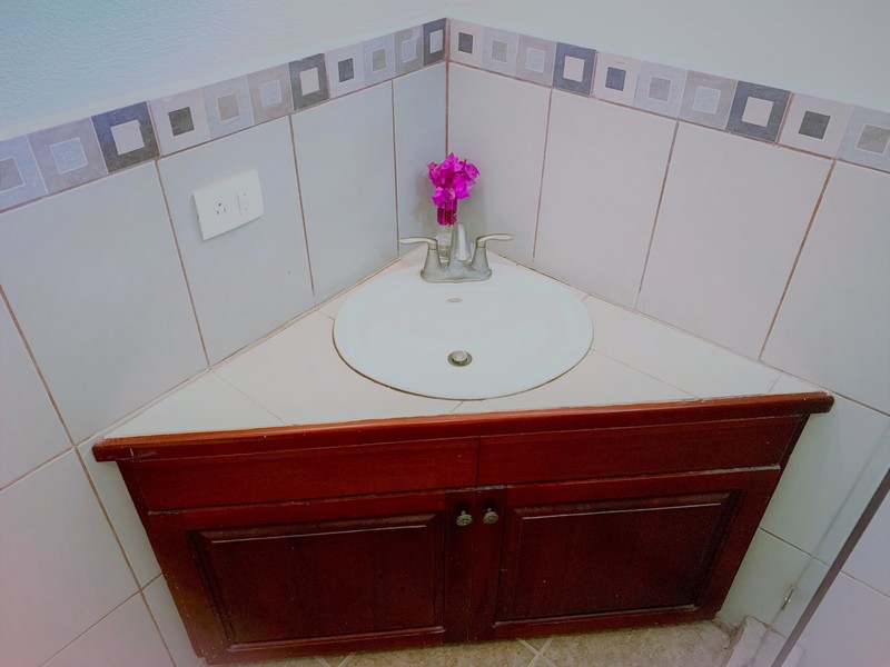 While initially constructed as a guest house, Casa Aracari was designed with the potential for expansion. The spacious ground floor area beneath the patio/living room can be enclosed to create a third bedroom, an office, an exercise room, or a laundry room. Currently, the laundry is conducted in the open area beneath the house, which features a concrete floor and a laundry-sized basin with hot and cold water.