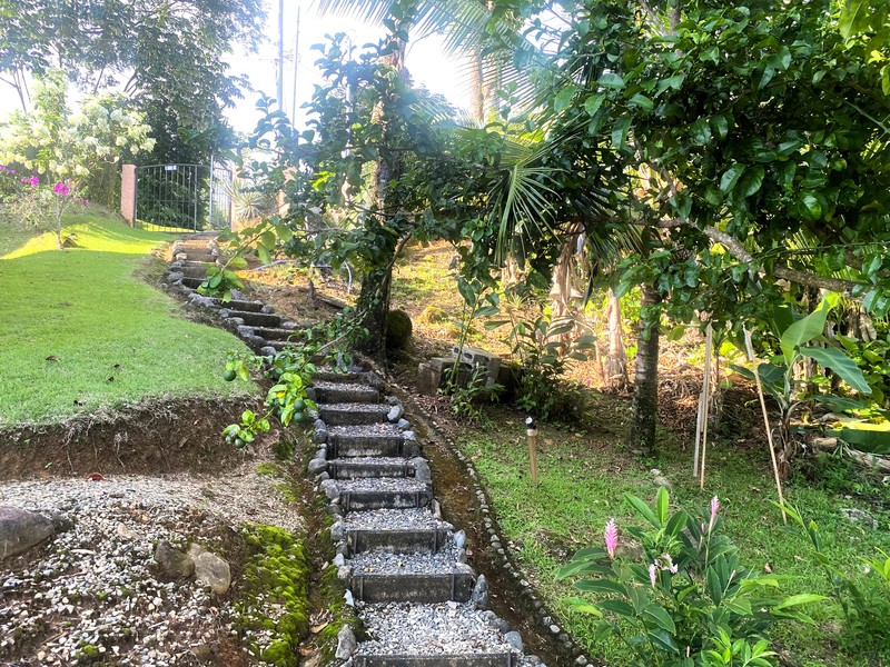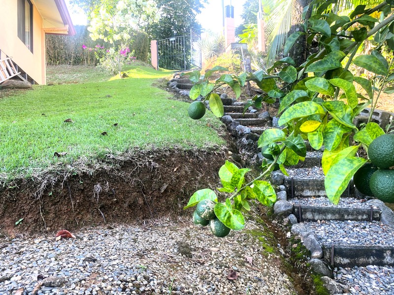 The gardens feature a wide array of flowers as well as fully-grown banana, coconut, and lemon trees. Additionally, mature almond trees are strategically planted near the balcony to provide nourishment for the scarlet macaws that often land within a 30-foot radius.