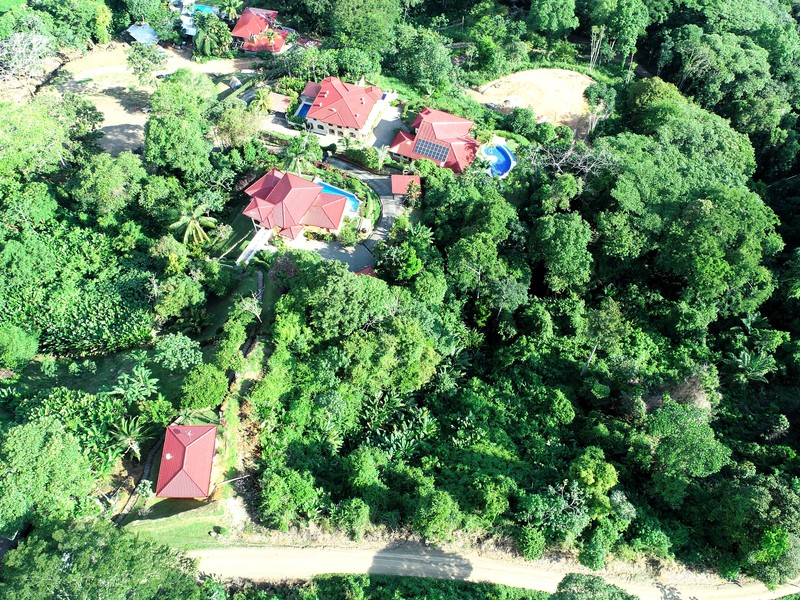 This property is a two-bedroom residence offering breathtaking panoramic views of the Pacific Ocean and rainforest in the prestigious Ojochal area. Perched atop a hill within a secure gated community, this exceptional property sits at an elevation of approximately 700 feet above sea level. Constructed on sturdy steel and concrete pillars, the main living areas are elegantly situated on the second floor, providing a unique vantage point to observe birds in flight and even glimpse into their nests. Immerse yourself in the harmonious symphony of nature that envelops this remarkable sanctuary.