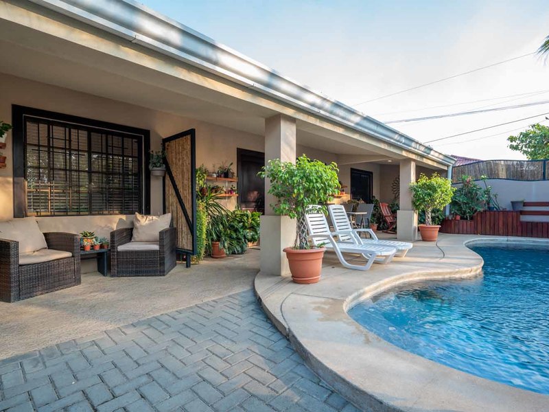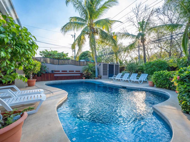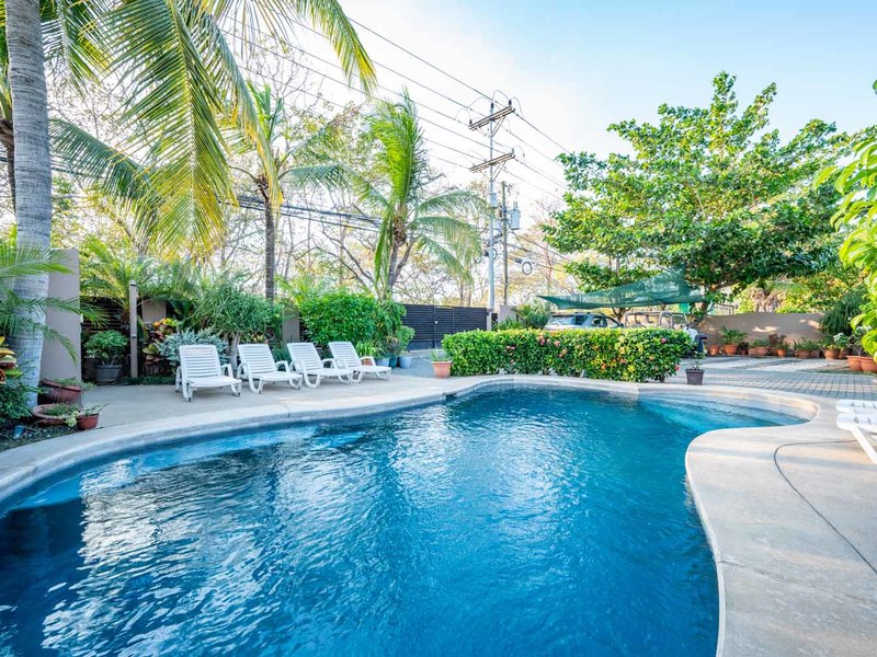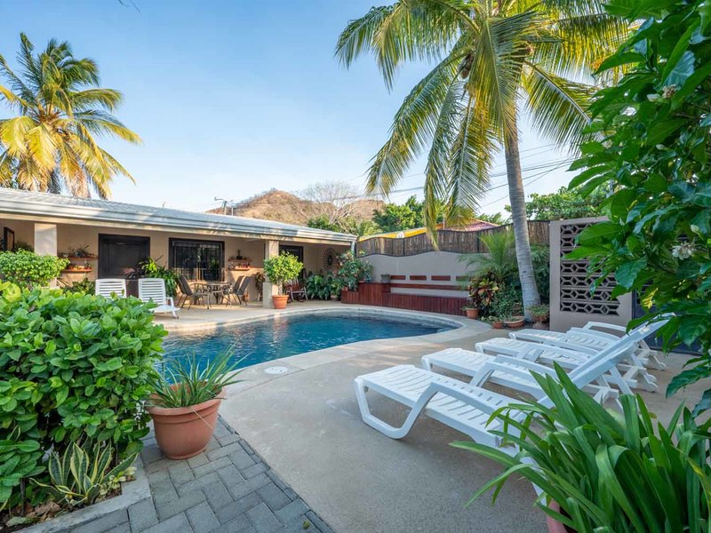 This is an amazing opportunity to invest in the Flamingo Beach area, to take advantage of the new marina and to own property in Costa Rica. The Guest House Apartments are centrally located in Flamingo, minutes from the beach, shopping, dining, banking, clinics and schools, and the brand new marina. There are three apartments total. Two apartments have 2 bedrooms and 2 bathrooms. The third apartment is a 1 bedroom, 1 bathroom. All have covered verandas in front with comfortable outdoor seating facing the pool and tropical garden.