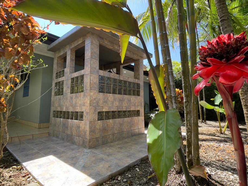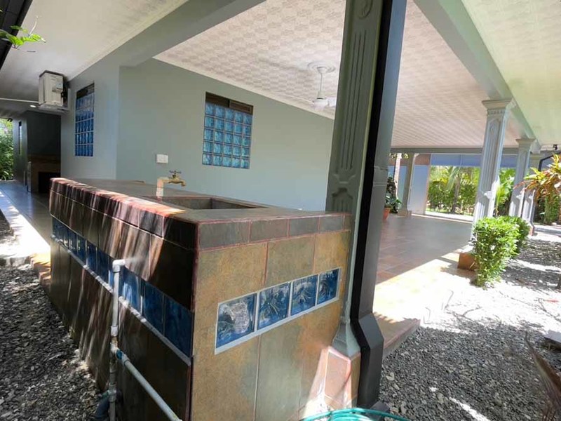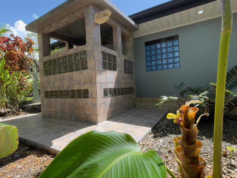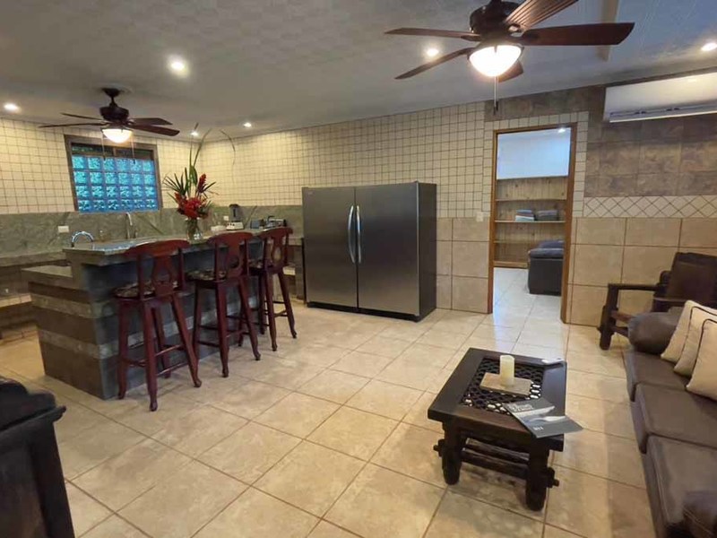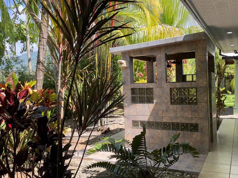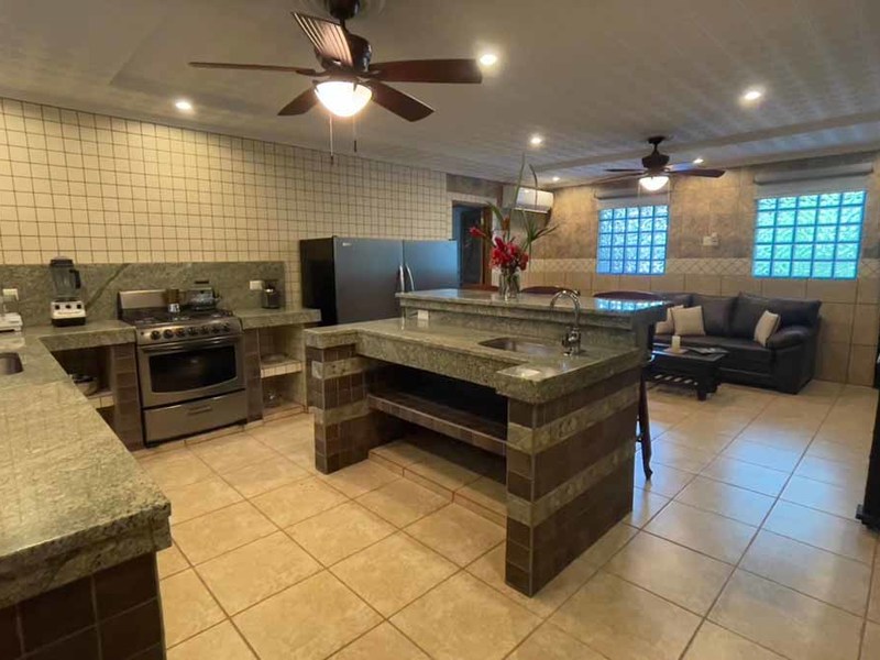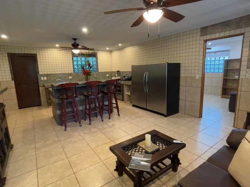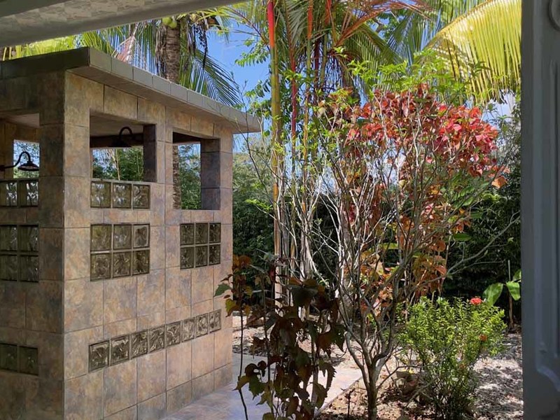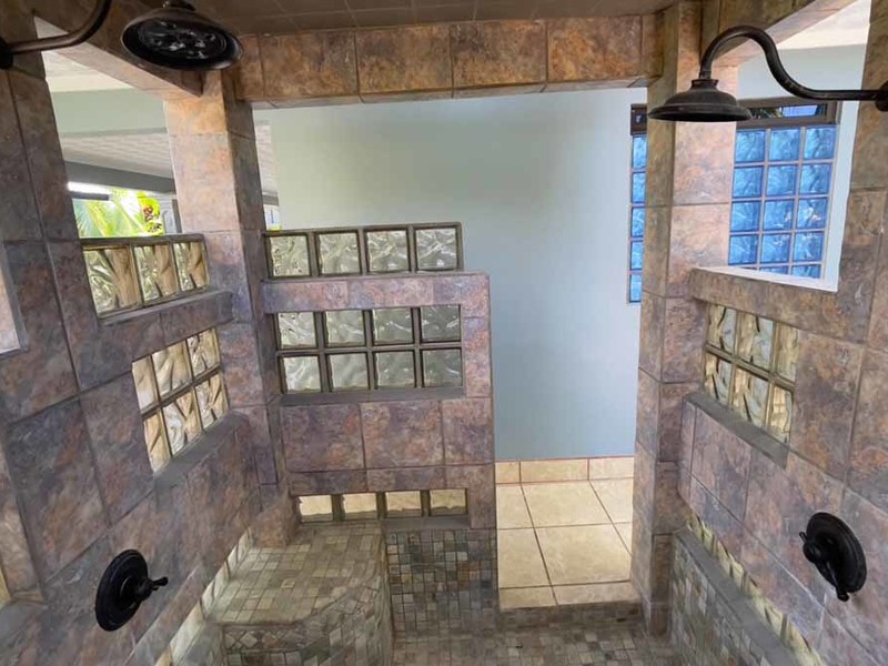 But that's not all - this property also has some incredible outdoor features too! The impressive outdoor shower complex includes two separate showers with multiple heads, making it easy to rinse off after a day at the beach or poolside. Additionally, there's an exterior rinse station so you can easily wash off any excess sand before heading back inside. And finally, surrounding landscaping complete with organic fruit trees, coconut palms, and tropical flowers will transport your senses as soon as you step outside.