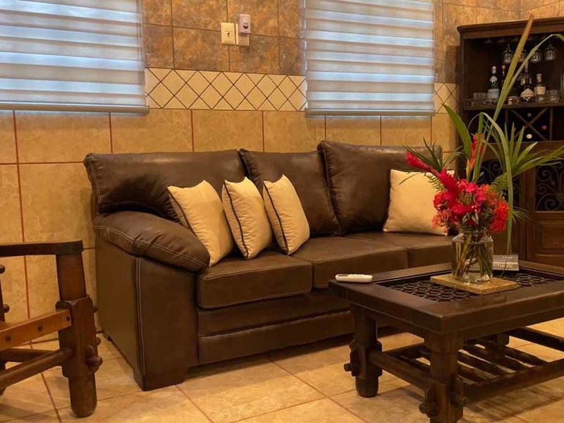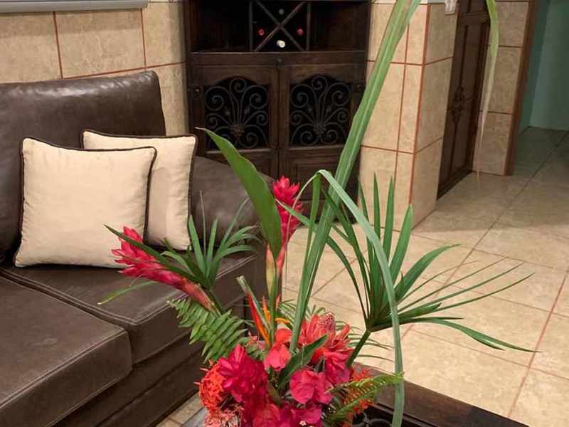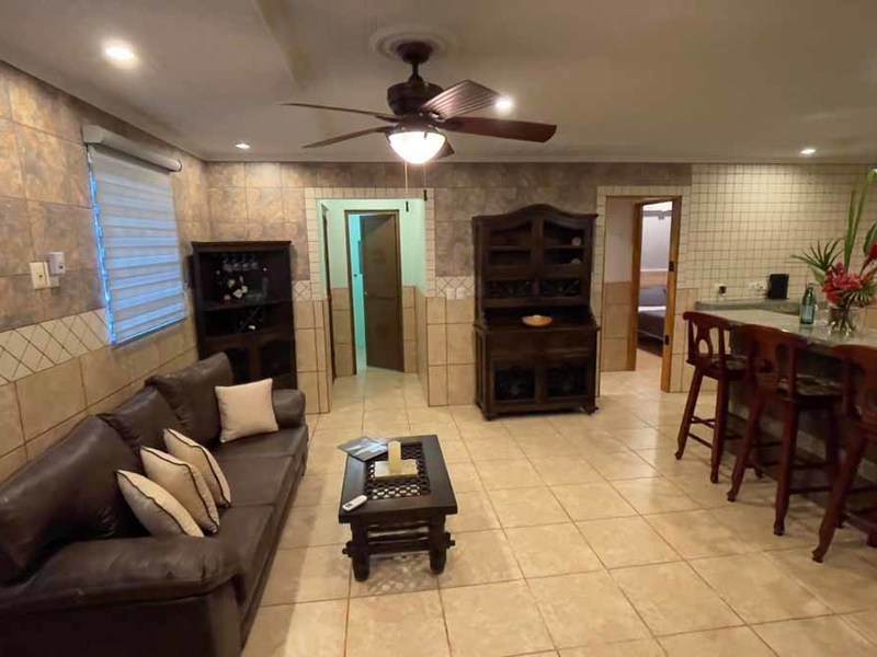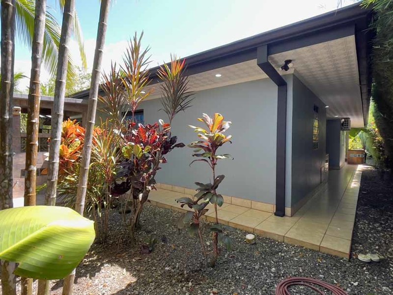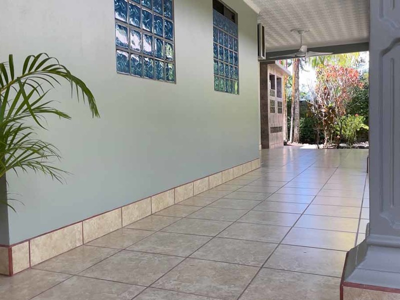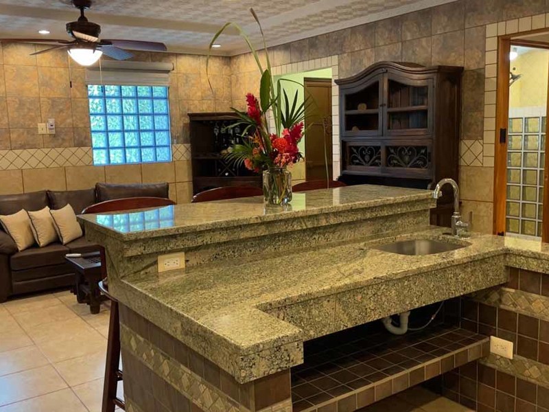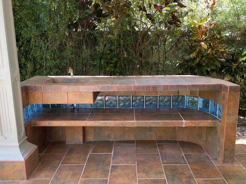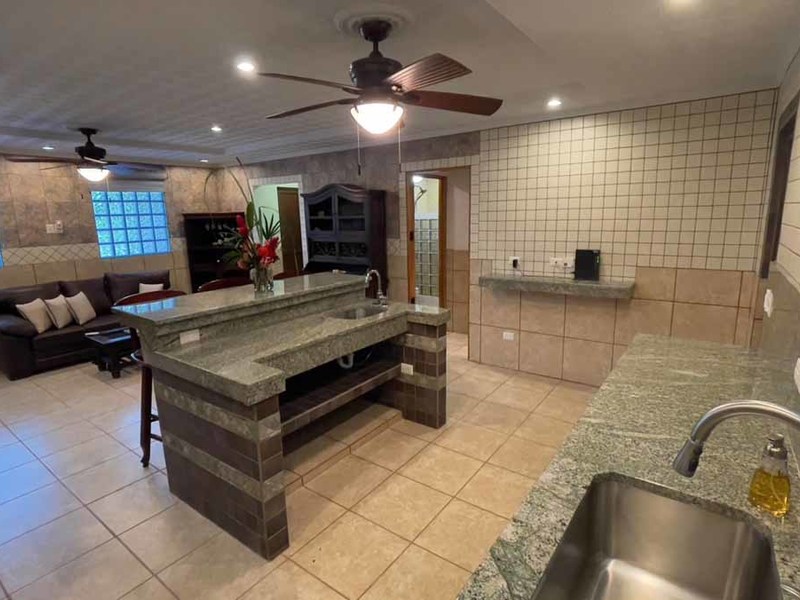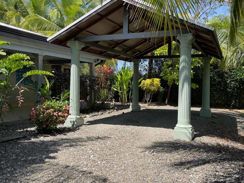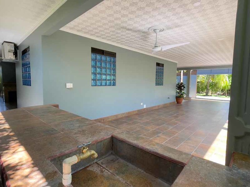 But that's not all - this property also has some incredible outdoor features too! The impressive outdoor shower complex includes two separate showers with multiple heads, making it easy to rinse off after a day at the beach or poolside. Additionally, there's an exterior rinse station so you can easily wash off any excess sand before heading back inside. And finally, surrounding landscaping complete with organic fruit trees, coconut palms, and tropical flowers will transport your senses as soon as you step outside.
