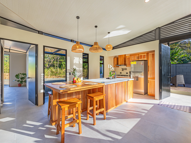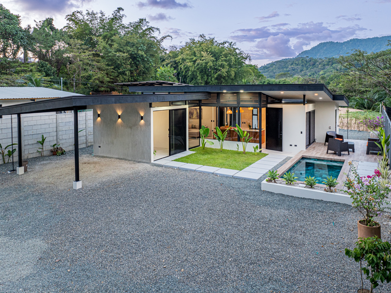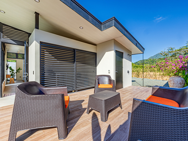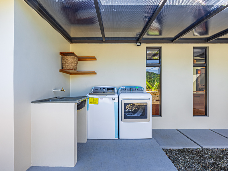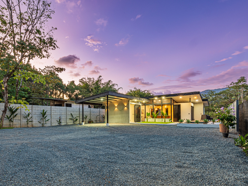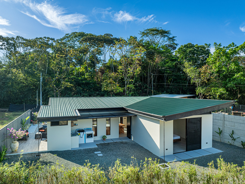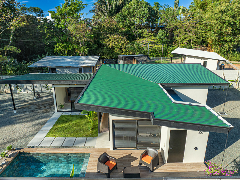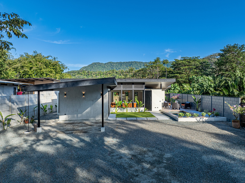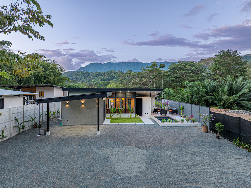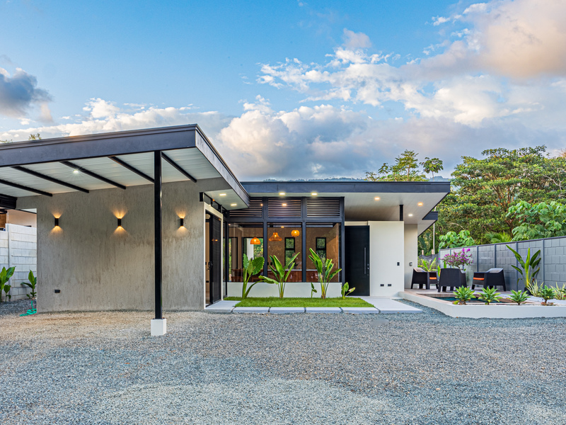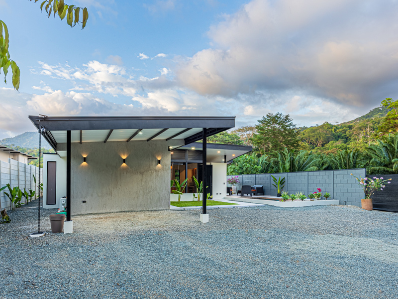 A covered parking area is included, accommodating up to two cars and providing protection from the elements. The exterior of the property will be adorned with lush tropical gardens, enhancing the beauty and tranquility of the surroundings. A lovely patio area, complete with a grill, will be perfect for outdoor gatherings and enjoying the pleasant climate of Uvita. The contemporary style of the house and attention to detail, adds a touch of sophistication and elegance to the overall aesthetic.