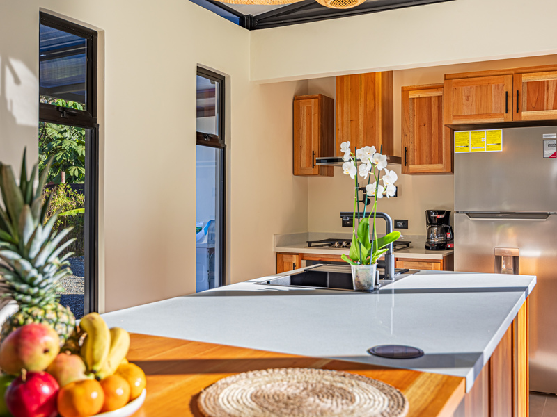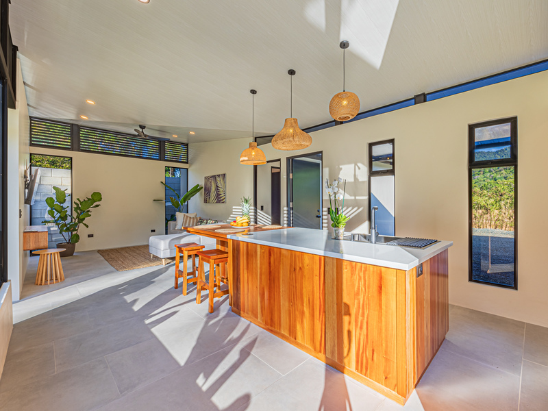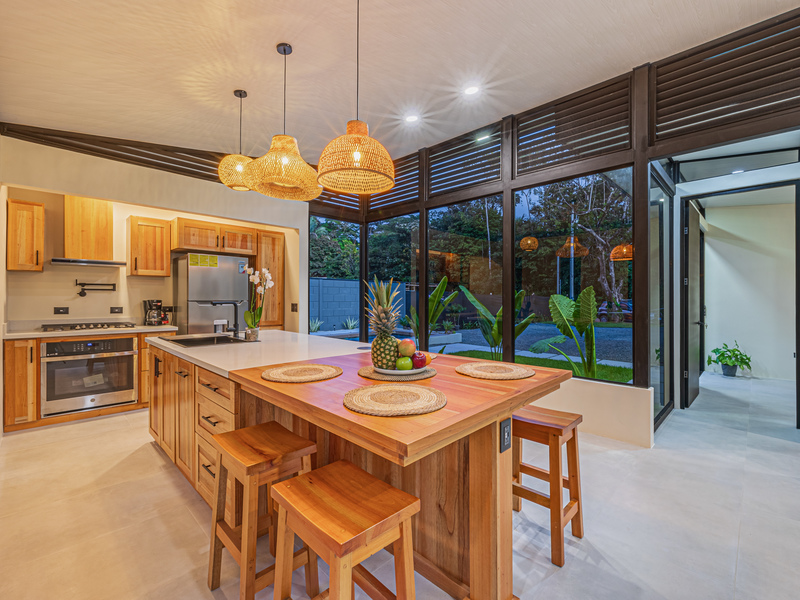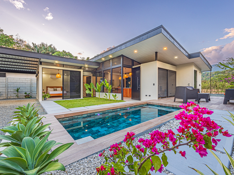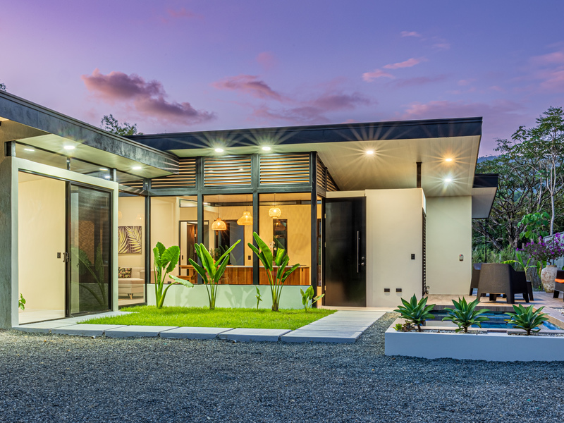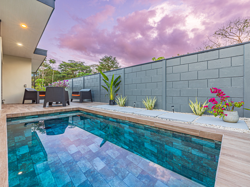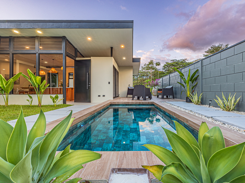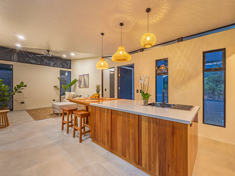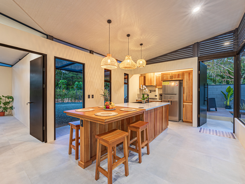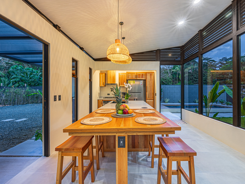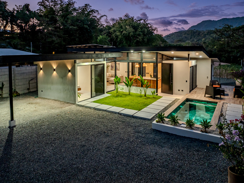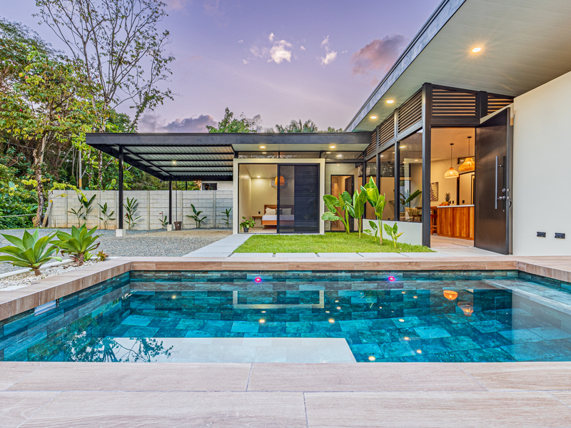 A covered parking area is included, accommodating up to two cars and providing protection from the elements. The exterior of the property will be adorned with lush tropical gardens, enhancing the beauty and tranquility of the surroundings. A lovely patio area, complete with a grill, will be perfect for outdoor gatherings and enjoying the pleasant climate of Uvita. The contemporary style of the house and attention to detail, adds a touch of sophistication and elegance to the overall aesthetic.