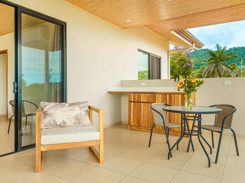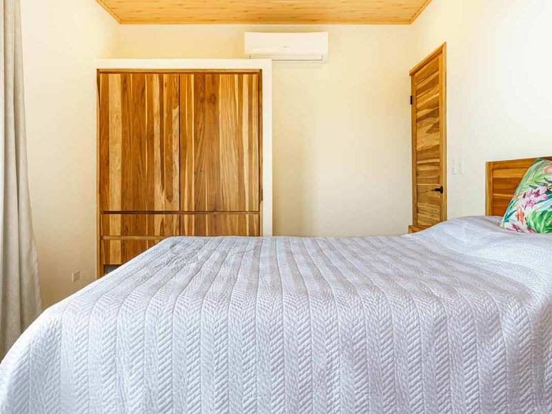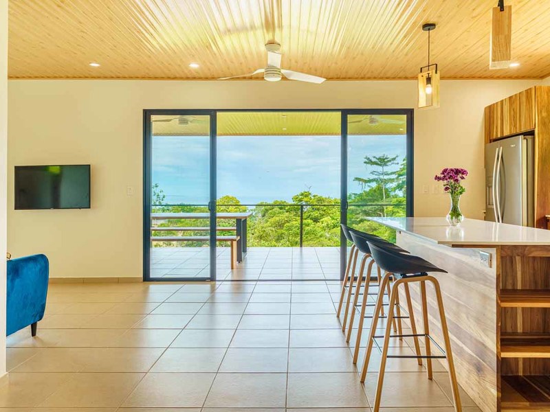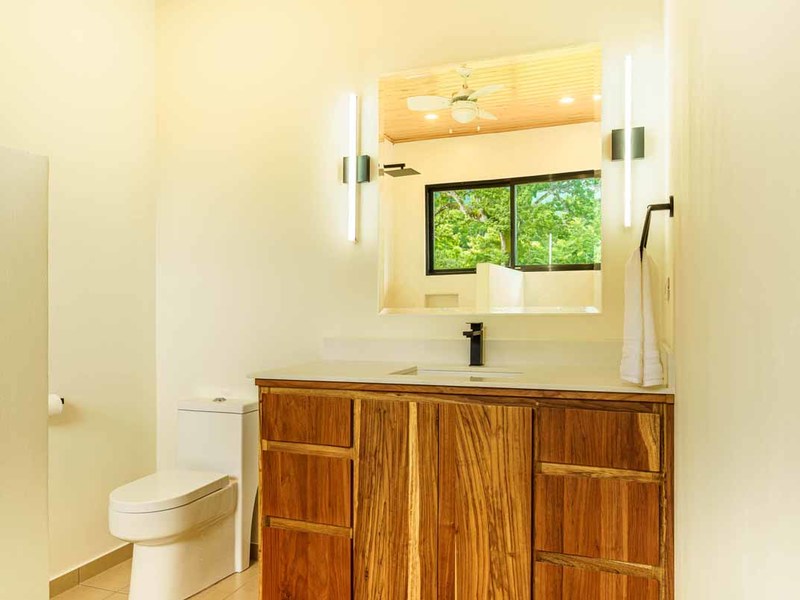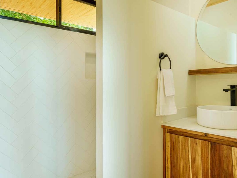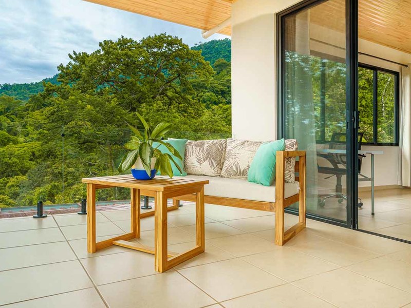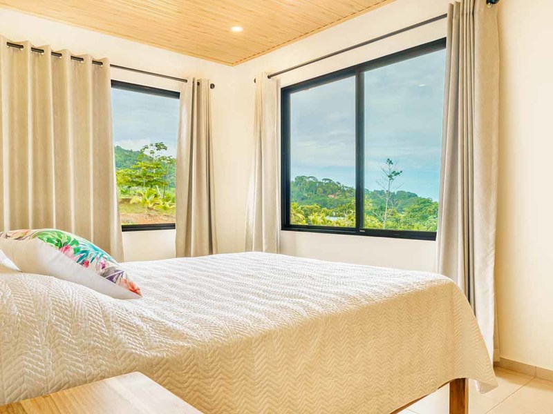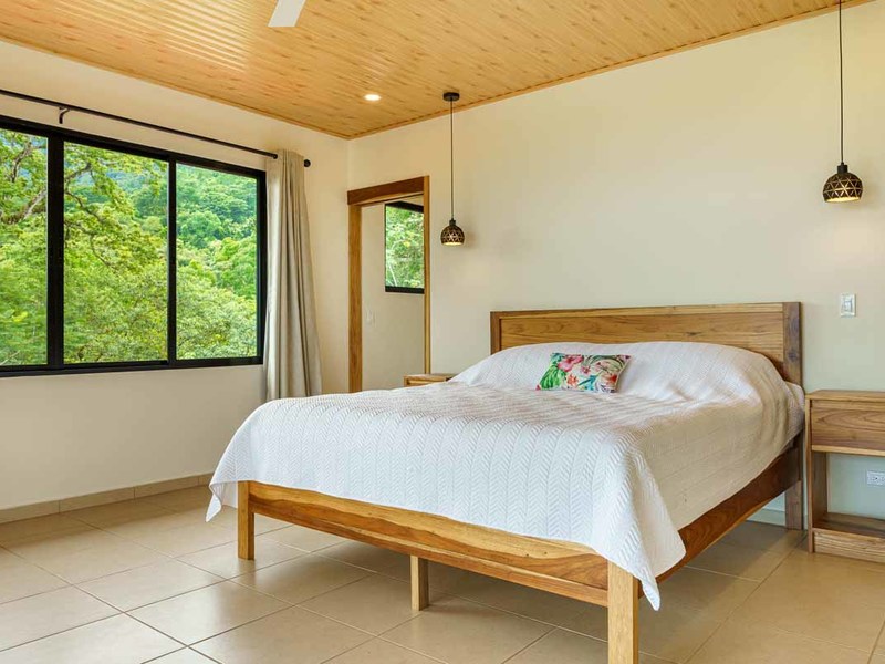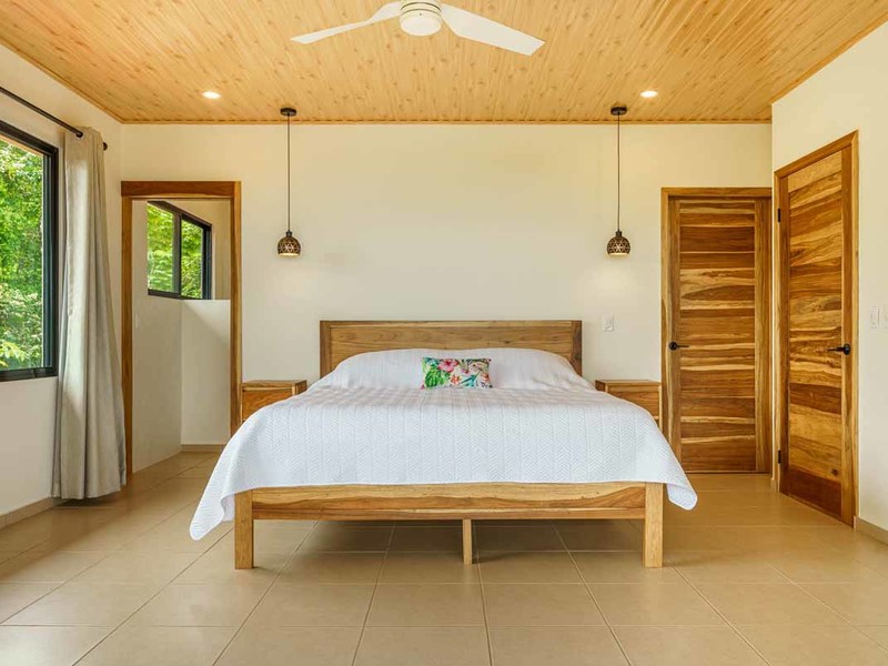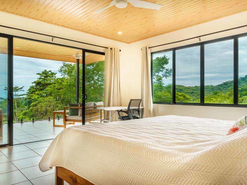 Primary Bedroom Suite: Head upstairs to the primary bedroom suite, which offers a private en suite bathroom, walk-in closet, and a private terrace with sweeping views of the landscape. The terrace is the perfect place to relax and unwind after a busy day, with views of the mountains, jungle, and ocean in the distance.
