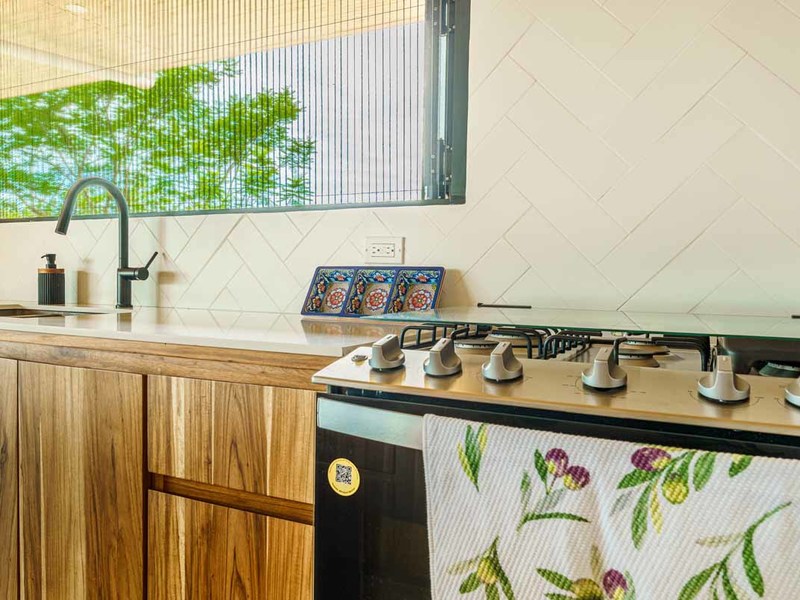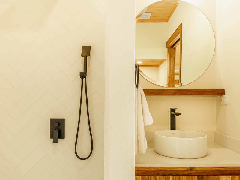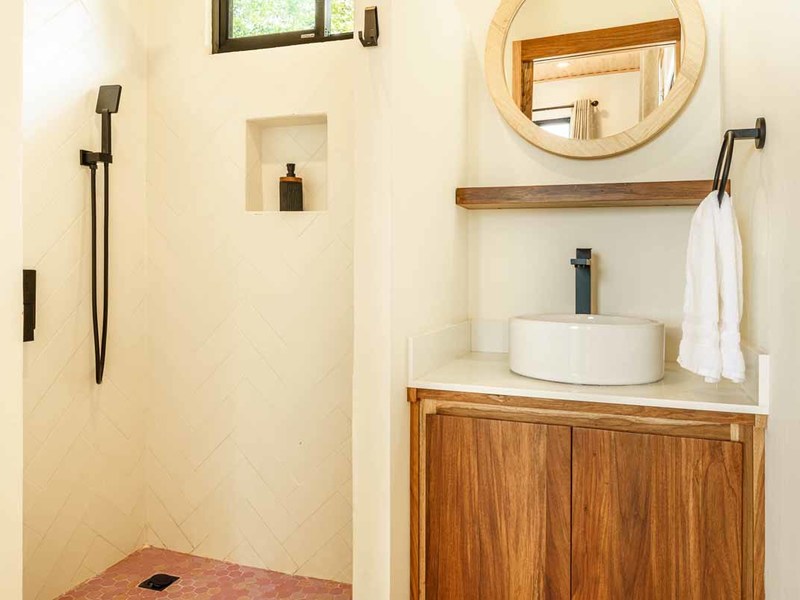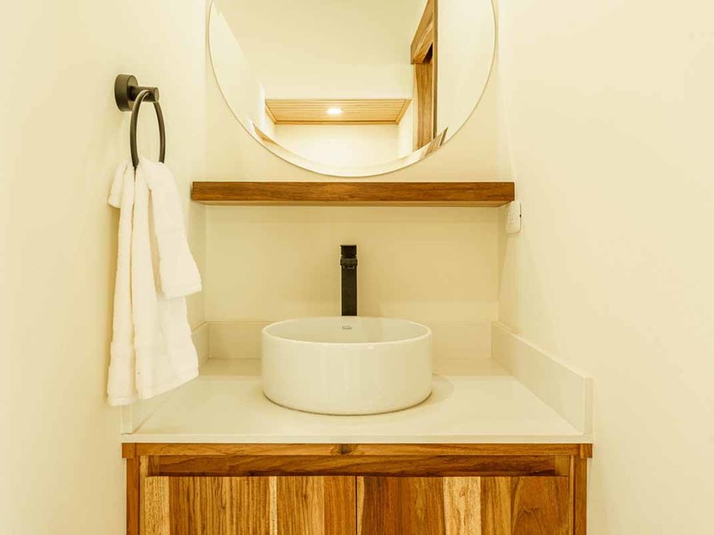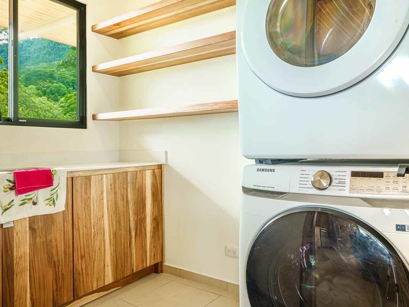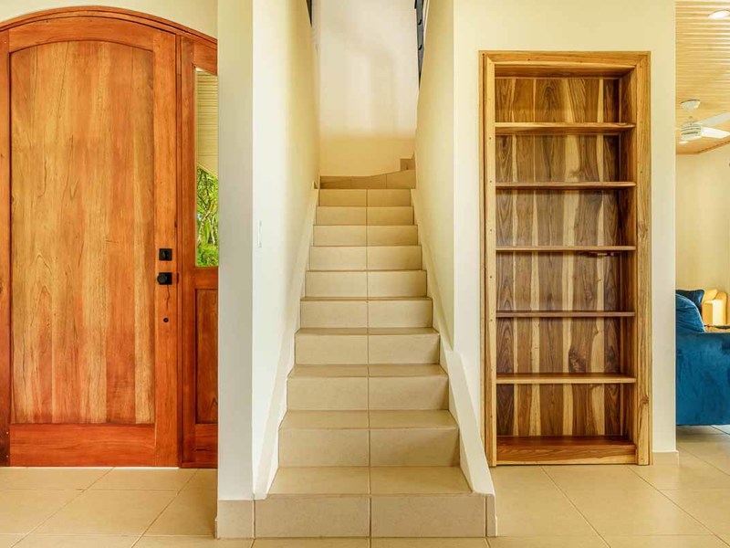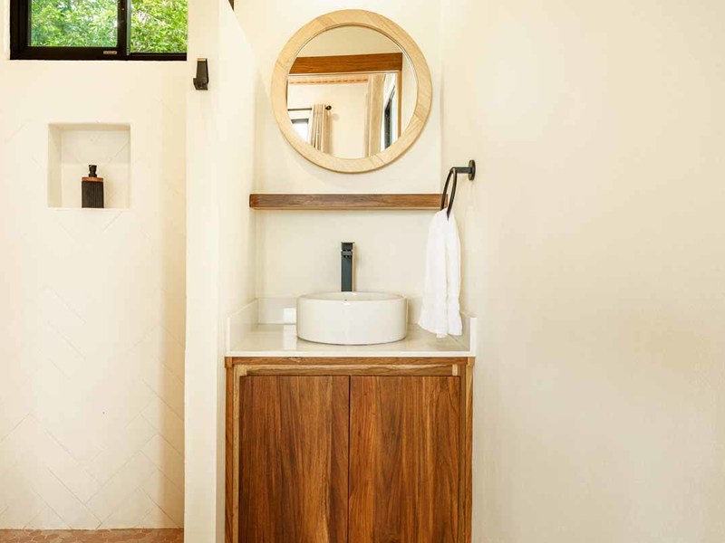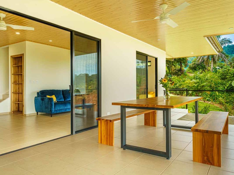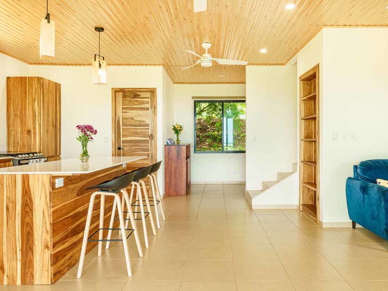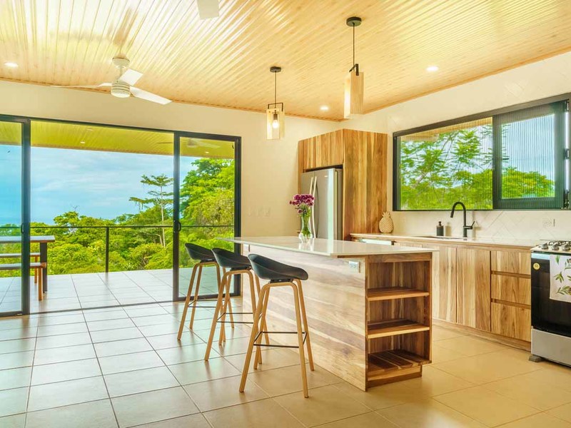 Primary Bedroom Suite: Head upstairs to the primary bedroom suite, which offers a private en suite bathroom, walk-in closet, and a private terrace with sweeping views of the landscape. The terrace is the perfect place to relax and unwind after a busy day, with views of the mountains, jungle, and ocean in the distance.