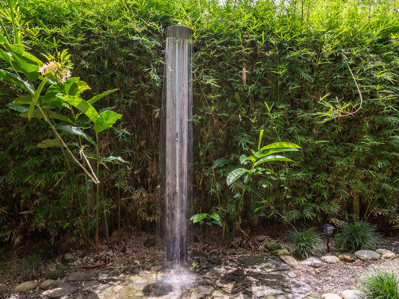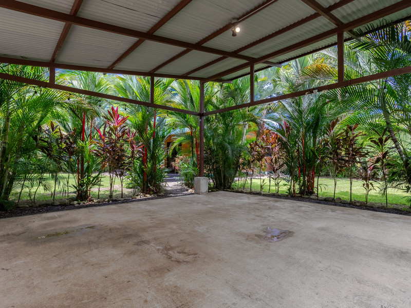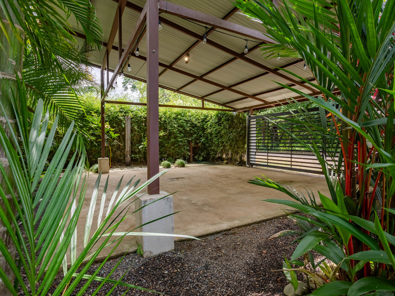The property includes a well-designed carport for two full-size vehicles, complete with a fully automated privacy gate featuring a remote control. A foot washing station is available for a refreshing cleanse after a day at the beach, and a custom outdoor shower enhances the overall appeal of this tranquil haven. Casa El Jardin is a perfect blend of comfort and natural beauty, offering a peaceful retreat close to the beach and essential amenities.