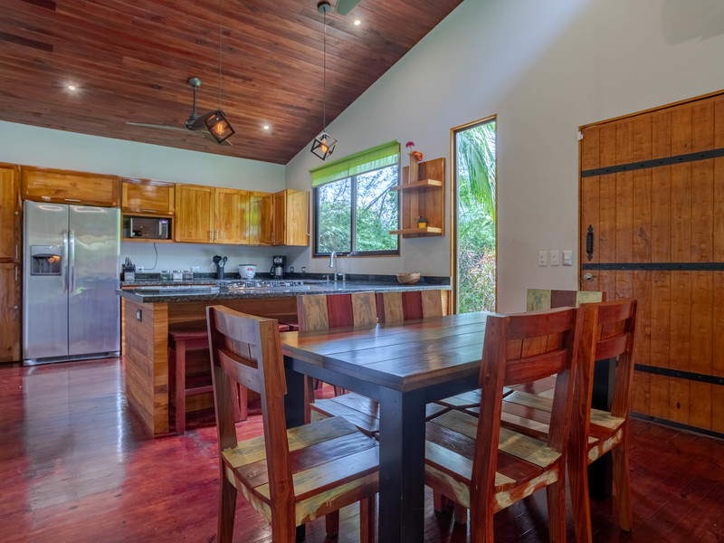 Welcome to Casa El Jardin, a charming 2-bedroom, 1.5-bath pressure-treated pine home nestled on 0.1 acres with a vast private garden surrounded by a stunning 12-foot bamboo hedge. This residence comes complete with a private carport featuring an automatic gate and flourishing fruit trees.