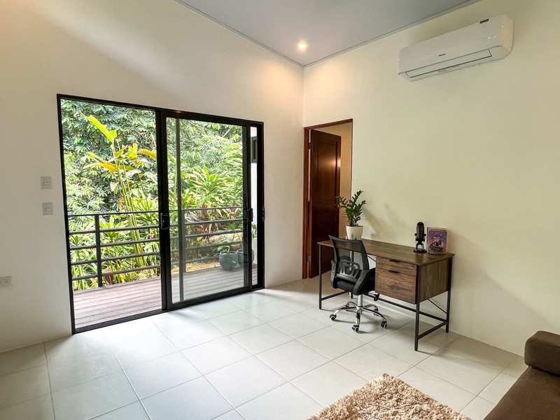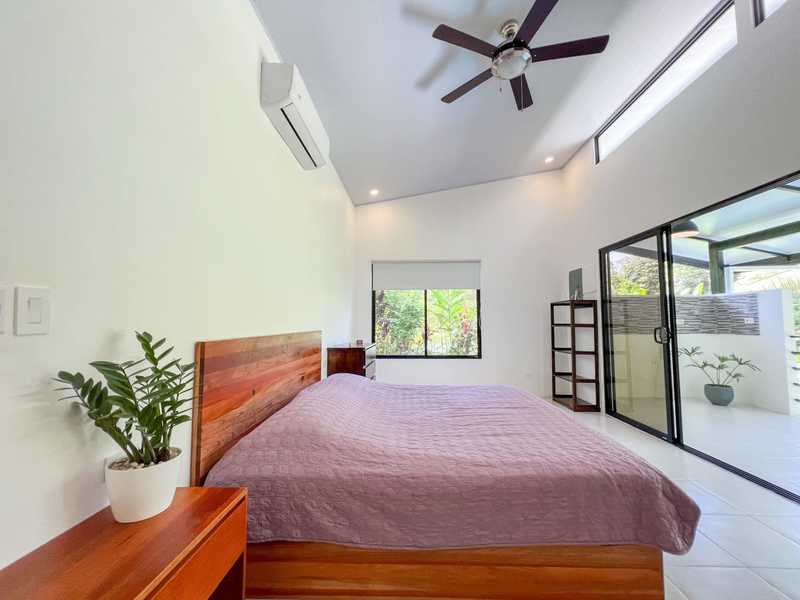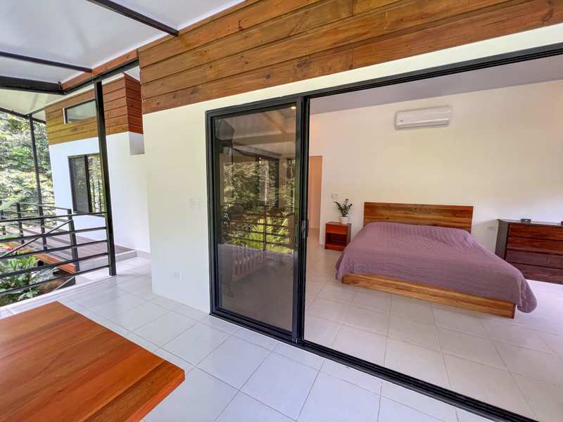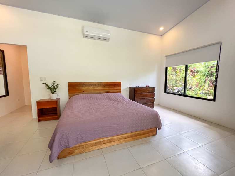 The master bedroom provides a touch of luxury with its balcony that overlooks a captivating pool view. It's the spot to unwind while savoring your morning coffee or stargazing under Costa Rica’s night sky. Inside the ample space creates an inviting atmosphere for relaxation.