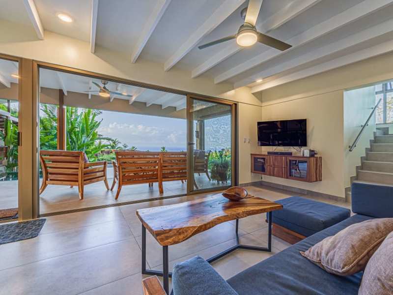 Indulge in the mesmerizing full ocean sunset views that grace this home year-round. With just a 7-minute drive to the main highway and easy access via mostly asphalt roads, Casa Bella offers both convenience and seclusion. Tucked behind gates and enveloped in privacy, it features an elevated sunset observation deck that seemingly floats over the lush garden, providing a tranquil retreat.
