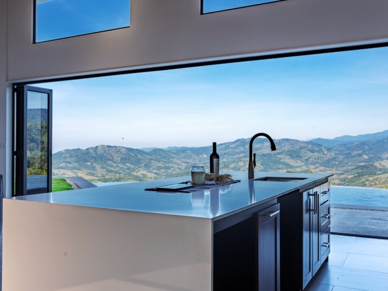 Upon crossing through the gate into the residence you'll quickly come to appreciate that you've secured a spot on the ridge. Revel in a 180-degree spectacle encompassing the entire mountain range. From lofty Alto San Juan to tranquil San Juan De Dios valley then sweeping back up towards coastal ridges and beyond to where the Pacific Ocean meets the horizon. This vista remains perpetually captivating perched at an elevation of 2,000 feet above sea level where the air's refreshingly crisp. The hues of both mountains and ocean evolve, throughout each day offering a palette of vivid greens, oranges, and purples.