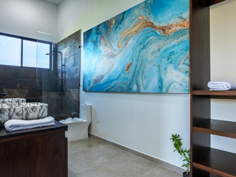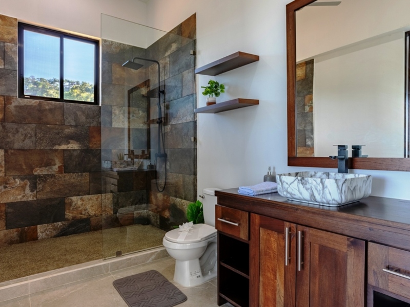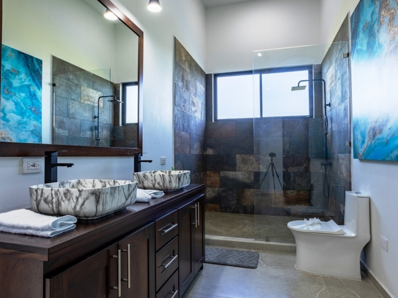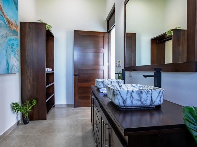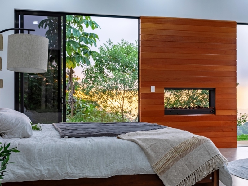This home spans 2,000 feet. Is constructed entirely from concrete blocks giving it a sturdy and modern feel inside. While currently featuring 2 bedrooms there is potential to add rooms in the additional spaces around the house. The master bedroom is spacious. Offers views of both mountains and ocean sunsets. With sliding glass doors leading to the patio and pool outside well, as a gas-operated fireplace that can be enjoyed indoors or outdoors from the bedroom – it truly offers a unique living experience.