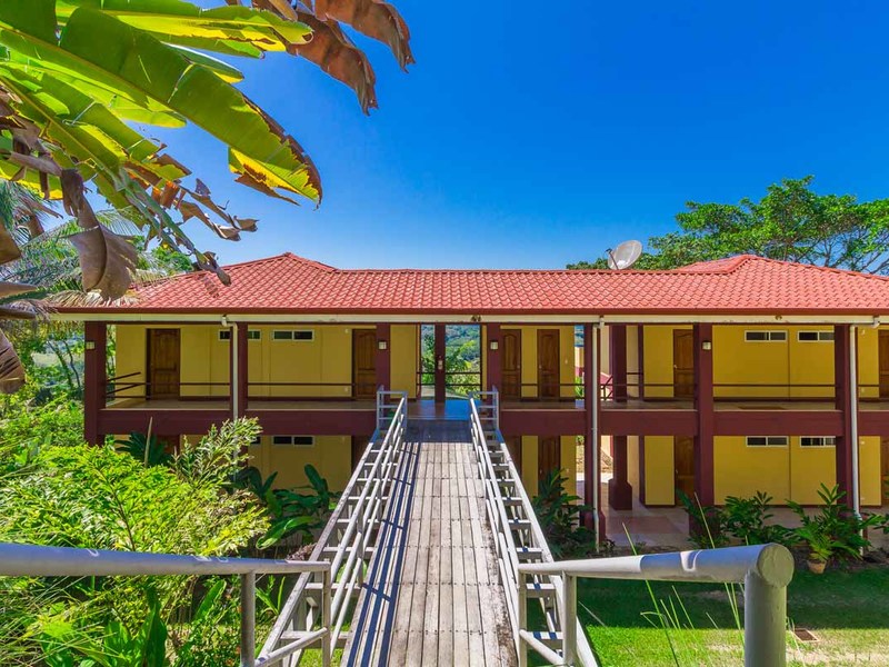 The hotel features a total of 20 rooms, consisting of 16 rooms with a king bed and a twin bed, and 4 rooms with a king bed. Each room is equipped with its own ensuite bathroom. Additionally, all rooms offer a private balcony affording stunning views of the ocean and sunset. Guests can relish a serene moment with a glass of wine, savoring a romantic sunset over the ocean, or indulge in morning coffee while taking in the panoramic views of the ocean and jungle. Moreover, this hotel is equipped with a laundry room, maintenance room, office, and 6 sleeping quarters dedicated to staff members.The dining area of the open-air restaurant on the property boasts stunning panoramic views, creating a delightful ambiance suitable for both intimate dinners and pleasant family breakfasts.