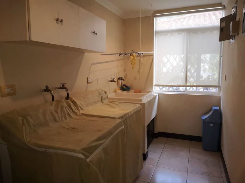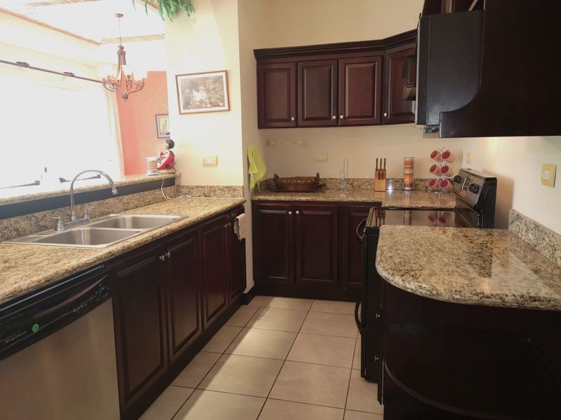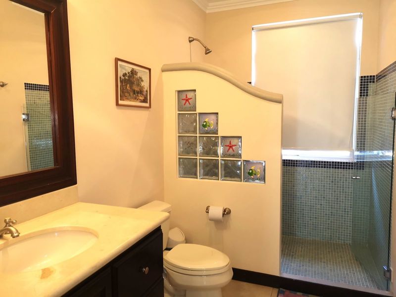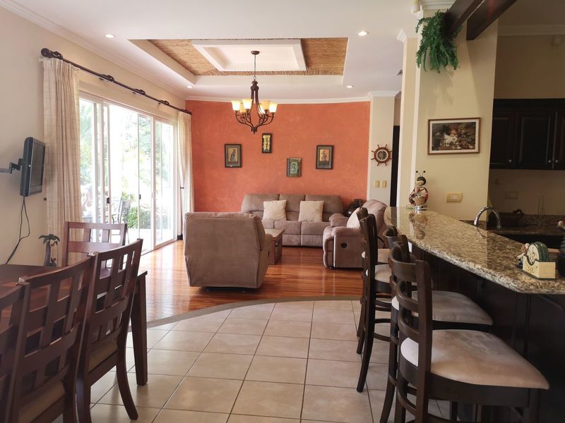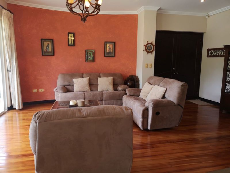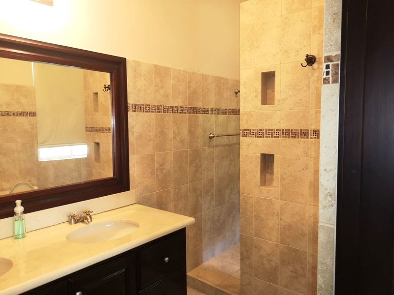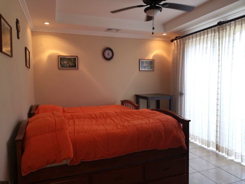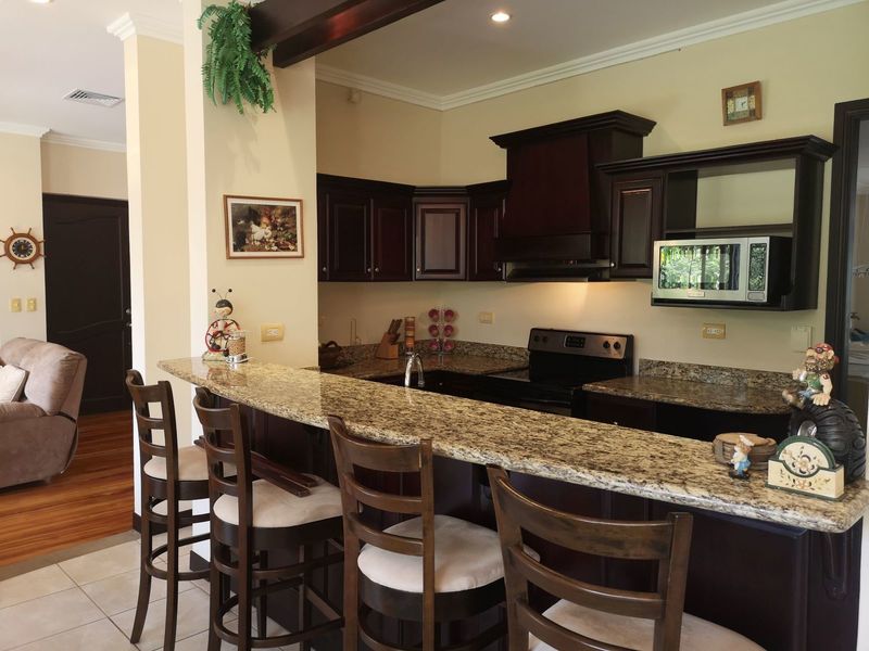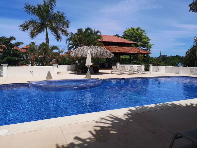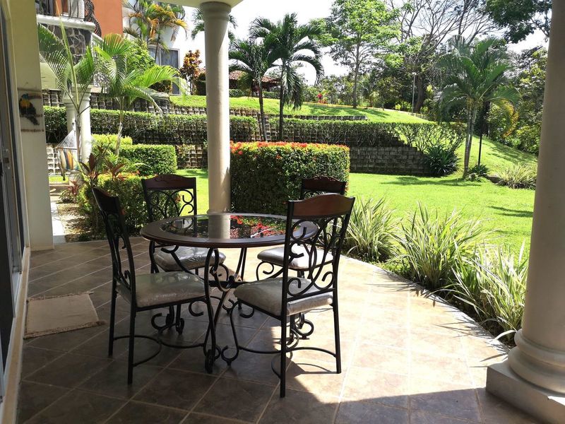Villas del Pacifico is part of a development with private villas, condos, studios and lots in the beautiful Central Pacific Region of Costa Rica between Jaco and Quepos. A convenient 30-minute drive on the Costa Nera from Jaco. At the entrance of the development are small houses built in a picturesque Caribbean style with restaurants and shops. Close by is the town center of Esterillos where you can find everything you will need to make your stay comfortable. Bejuco is a 15-minute walk to the beach where you will find a Tico restaurant right on the beach with great fresh fish. This 3 bedroom / 3-bathroom, ground floor condominium is one floor of a duplex building. Living room and master bedroom are opening to the terrasse with a view into a private garden space with pound.