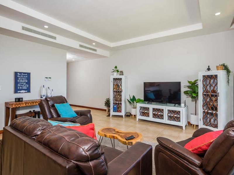 Perched high up in Reserva Conchal`s Jobo neighborhood—the closest condo to the beach — this amazing two-story, 2,468 sq ft penthouse is a perfect place to reward yourself for all your hard work with relaxation and tranquility. Huge sliding doors open onto spacious terraces with jaw-dropping views over the 15th hole of the golf course and the Pacific Ocean just beyond. Lushly forested mountains frame the view on either side. Paradise as far as the eye can see!