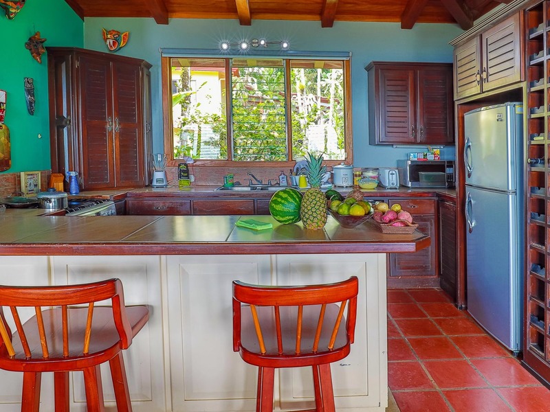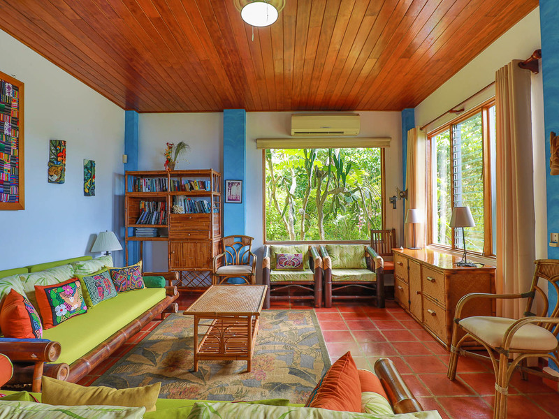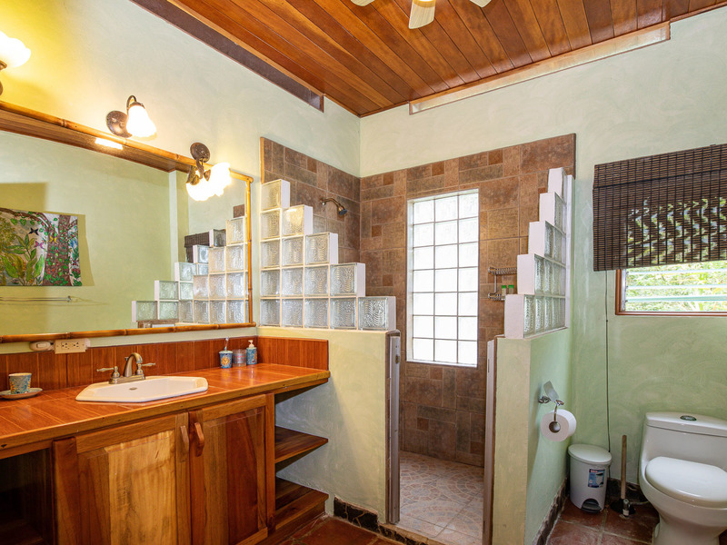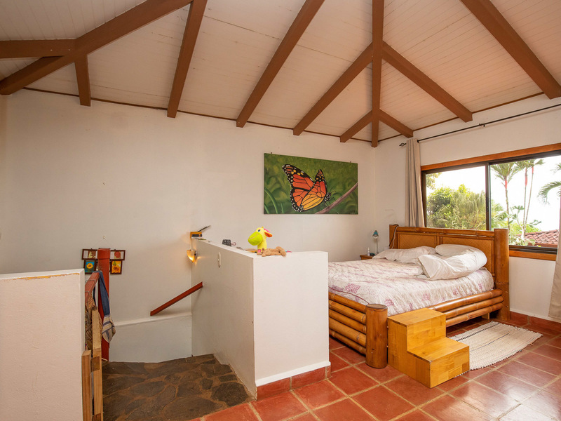 The lower level has a second living area (easily convertible into a third bedroom), another bedroom and another full bathroom. This level has more outdoor living space on the west facing (ocean view) side and also includes a bbq area with a wet bar and outdoor kitchen type of set up. The pool, just a few steps away, is surrounded by mature tropical vegetation and is totally private. The property is fenced, secured and features a security gate. At the top/entry level is a generous parking area with a covered stall. Adjacent to the parking area is two level guest home with charming finishes, a full kitchen, a cozy back porch and a second level which encompasses an ocean view terrace, bedroom area, a full bathroom and generous storage.