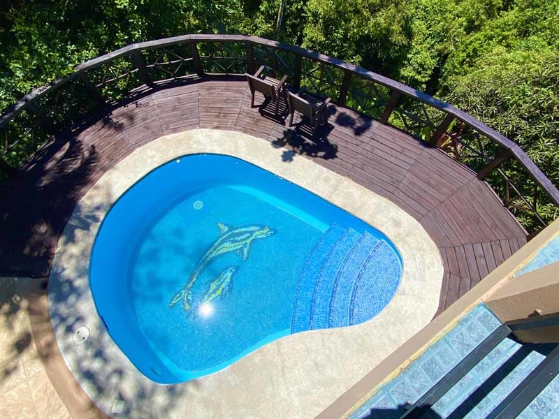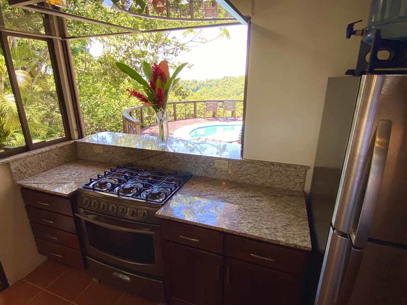 This home is nestled into the jungle with a stellar Ocean view and buts up to 75 acres of reserve/wildlife corridor. It has it all. Community trails take you into the jungle where you can swim under a waterfall surrounded by sloths and monkeys.