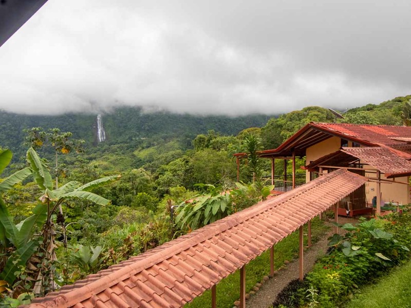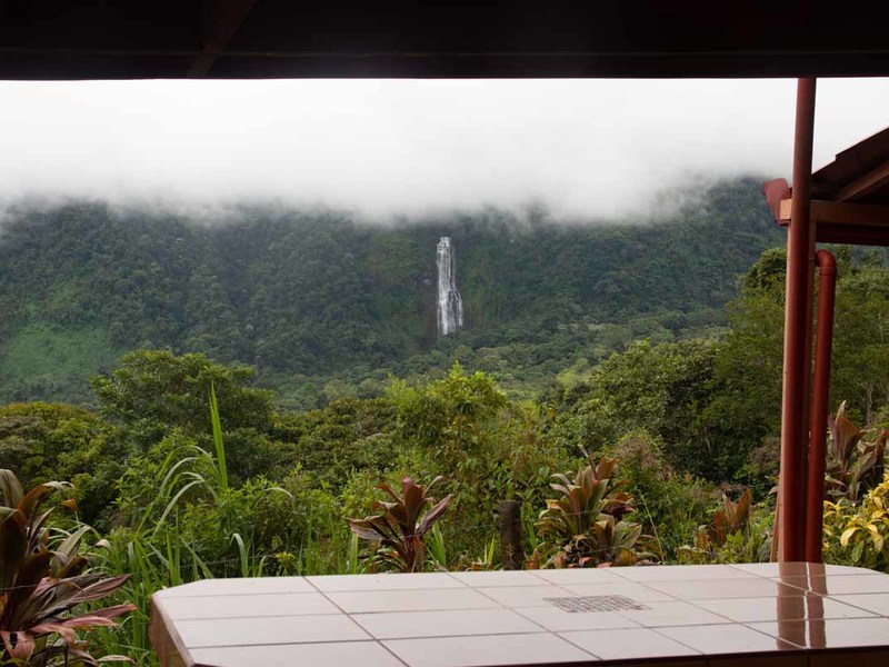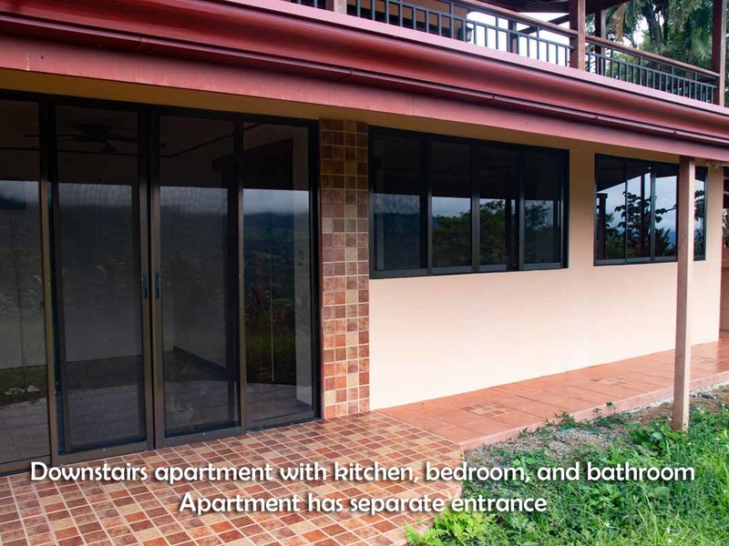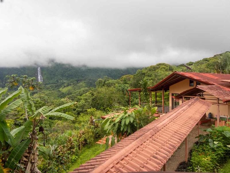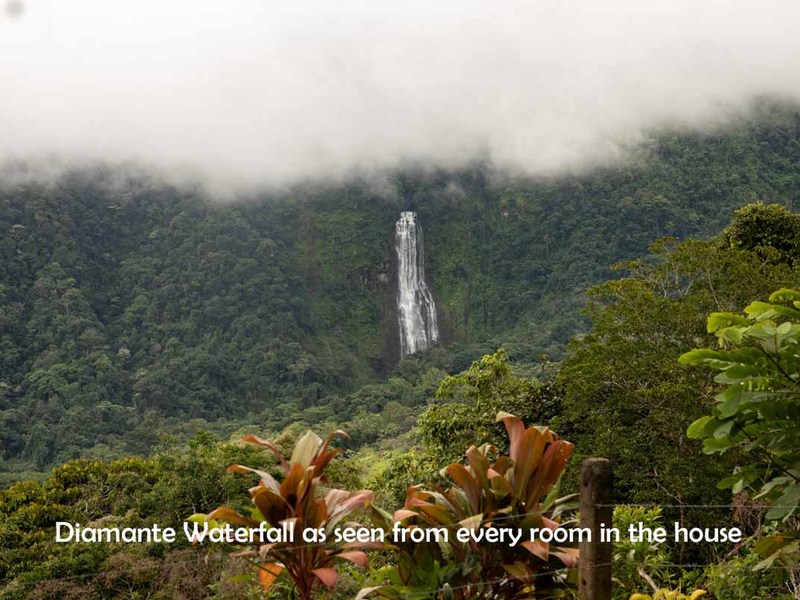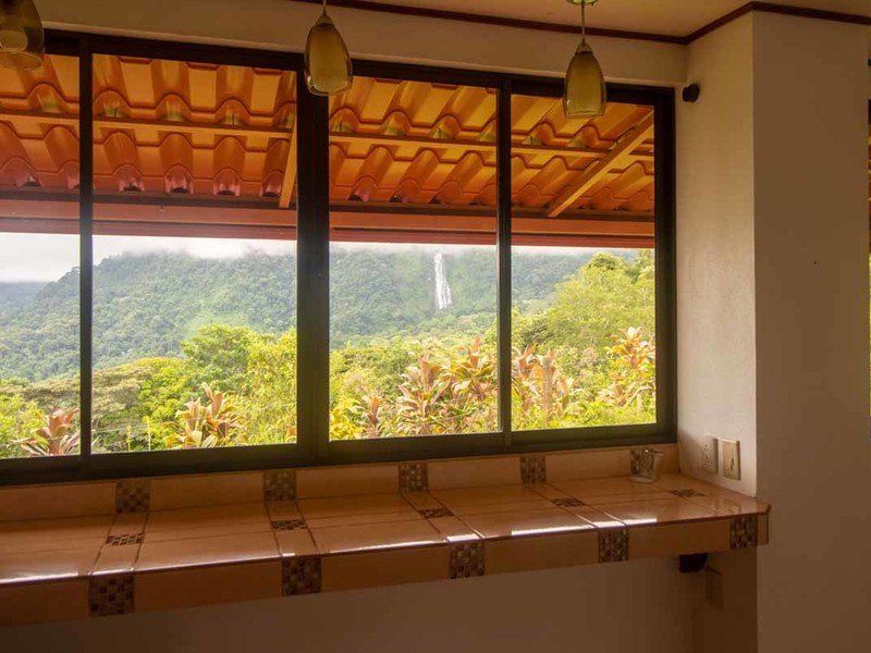 This three-bedroom home has a great view of the Diamante Waterfall from every room in the house. Upstairs there are two en-suite bedrooms opening to a huge porch and surrounding the living room/kitchen from both sides. Downstairs there is an apartment with its own kitchen and separate entrance, but this could be also used as a third bedroom and an office or a studio. Every one of these rooms has a spectacular view of the Diamante Waterfall.