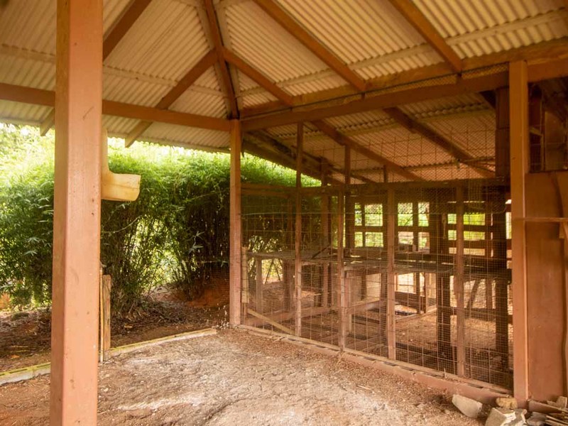 Then there are the out-buildings. There is a very well-built, two-story party building with a huge wooden deck facing the waterfall. This could be used for exercise, parties, relaxing, an outdoor but covered studio, or whatever. Then there is a garage, lots of storage rooms, a barn, a greenhouse, and lots of land with fruit trees and room to expand.