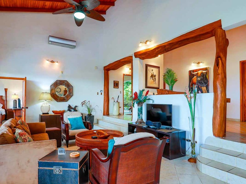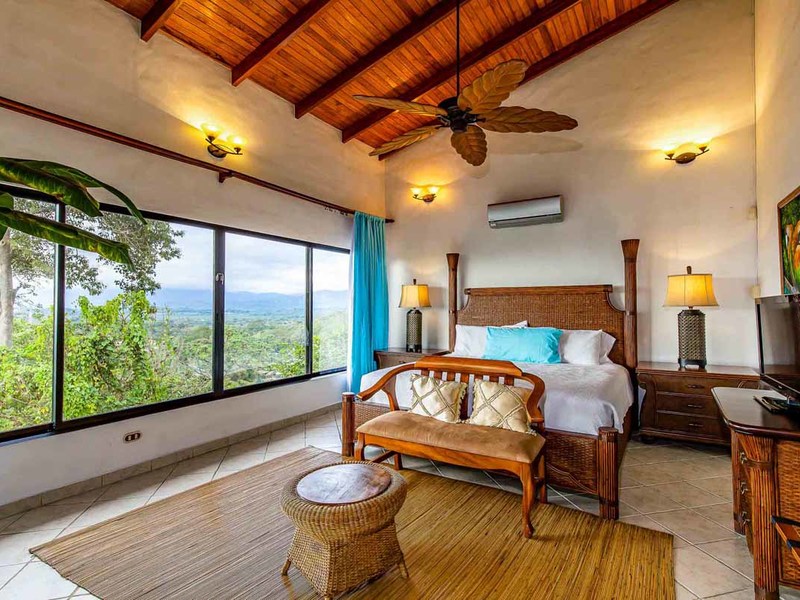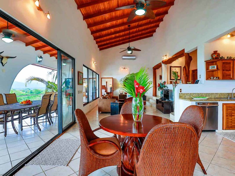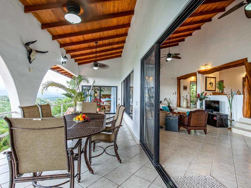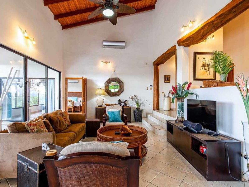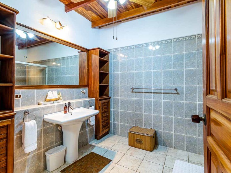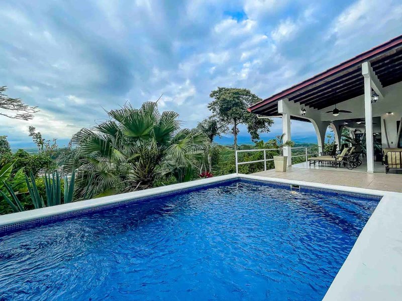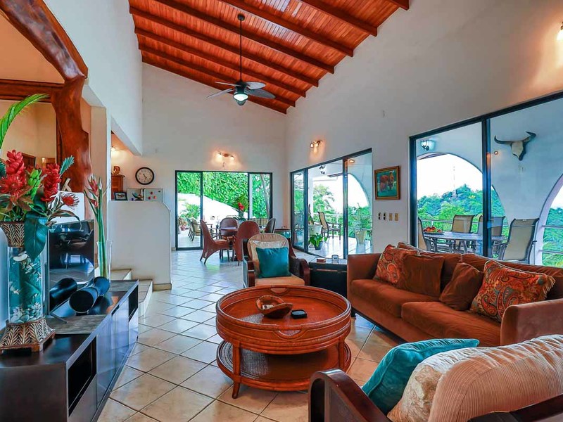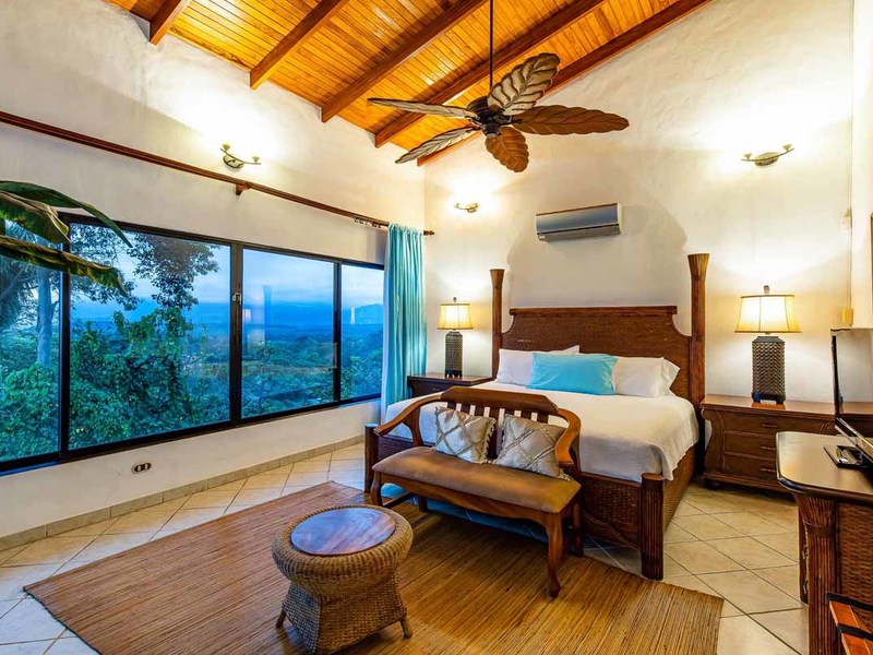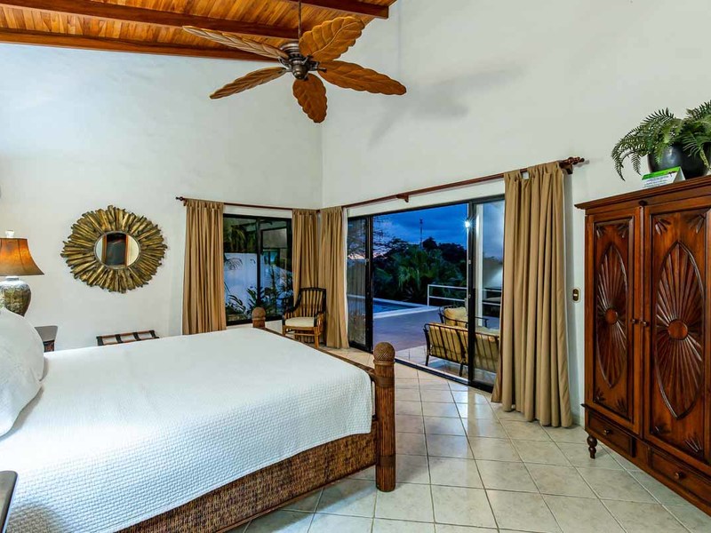 Perhaps the most attractive part of the home is the open floor plan kitchen living and terrace which are made to just sit back, relax and soak in the views and vibe. The spacious living, dining and kitchen are all in a space that can be closed off with a/c or can be opened up to integrate with the huge covered terrace where the is a second outdoor living space. The union of this indoor and outdoor living is what Costa Rica is all about and is where most guests spend their time. The home has one of the larger tiled pools with plenty of terrace space to soak in the sun and enjoy the daily visits from wildlife or just marvel at the panoramic setting.