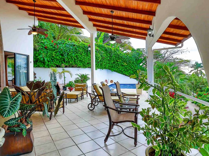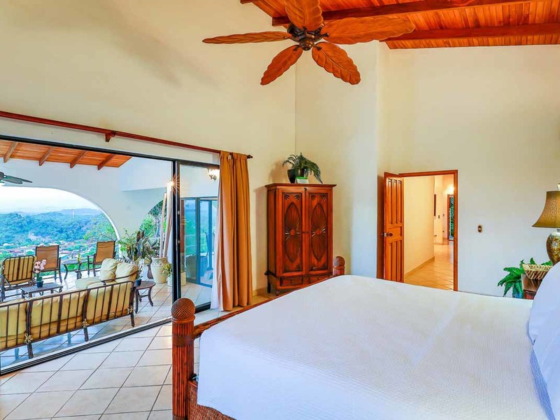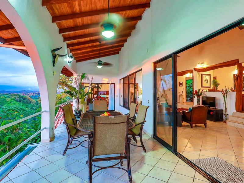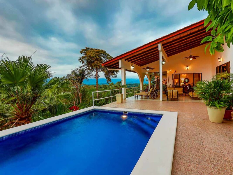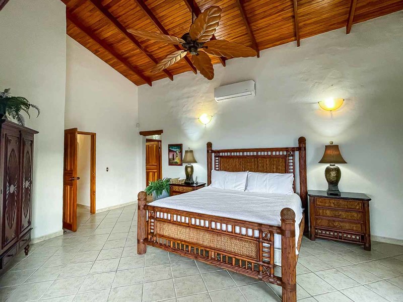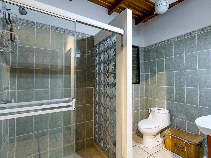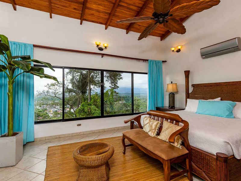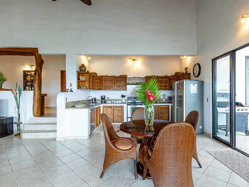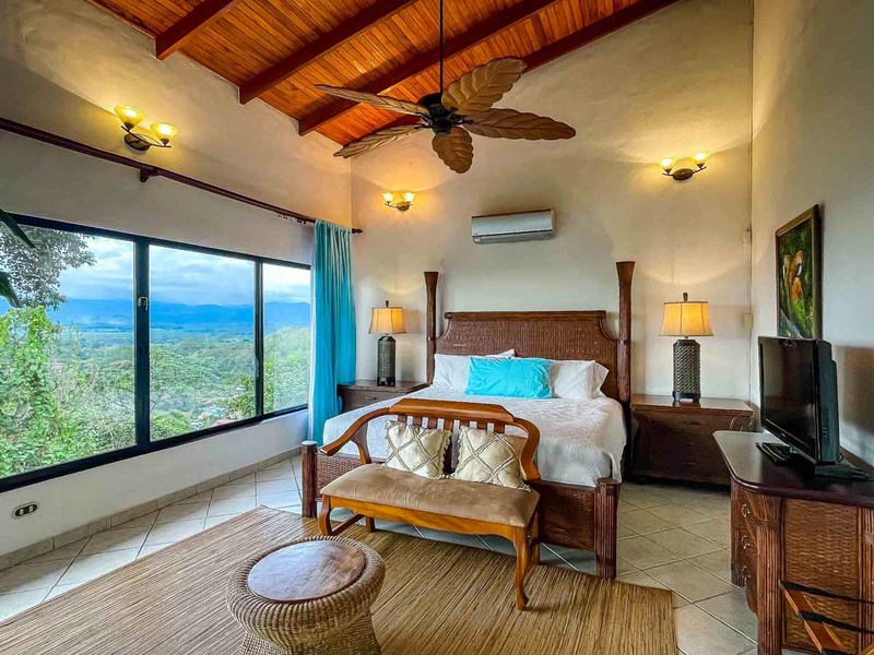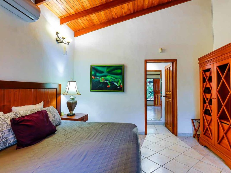 Perhaps the most attractive part of the home is the open floor plan kitchen living and terrace which are made to just sit back, relax and soak in the views and vibe. The spacious living, dining and kitchen are all in a space that can be closed off with a/c or can be opened up to integrate with the huge covered terrace where the is a second outdoor living space. The union of this indoor and outdoor living is what Costa Rica is all about and is where most guests spend their time. The home has one of the larger tiled pools with plenty of terrace space to soak in the sun and enjoy the daily visits from wildlife or just marvel at the panoramic setting.