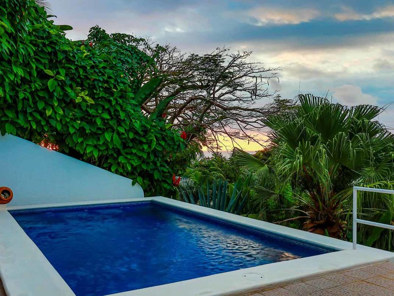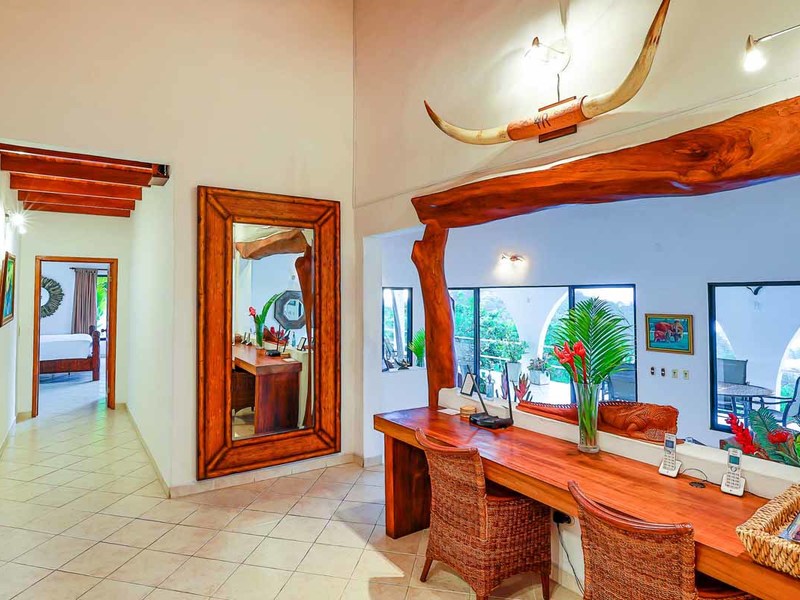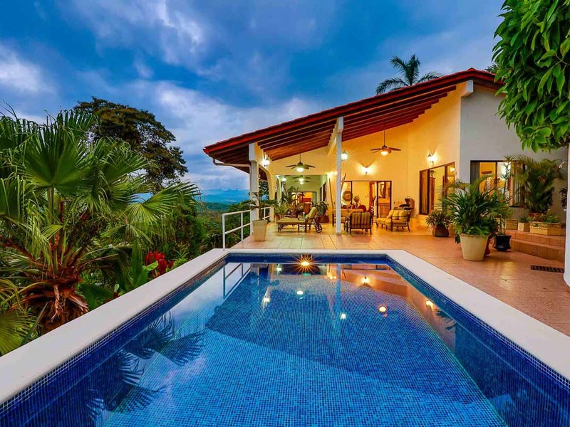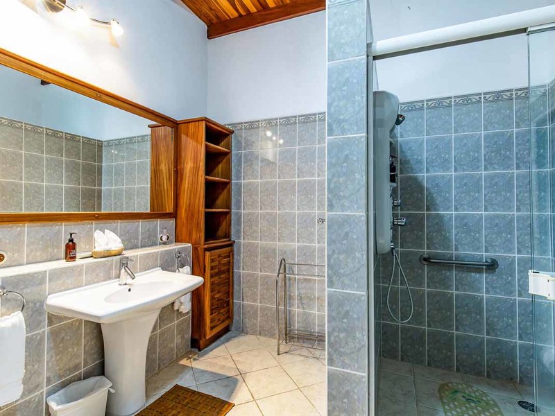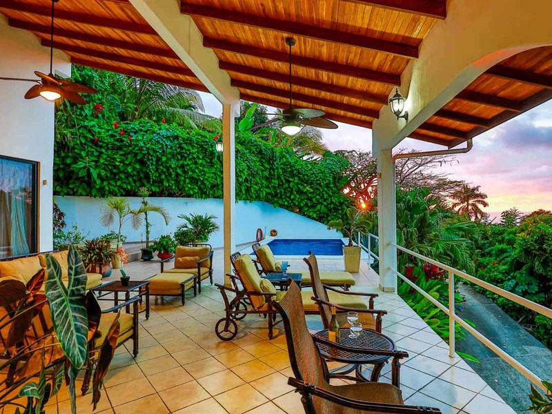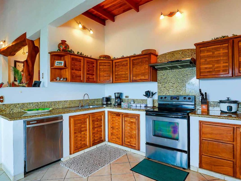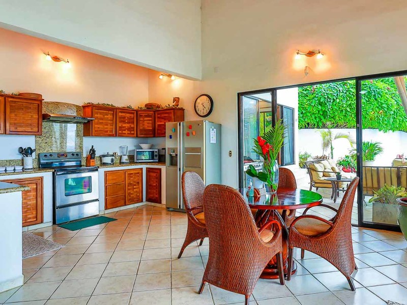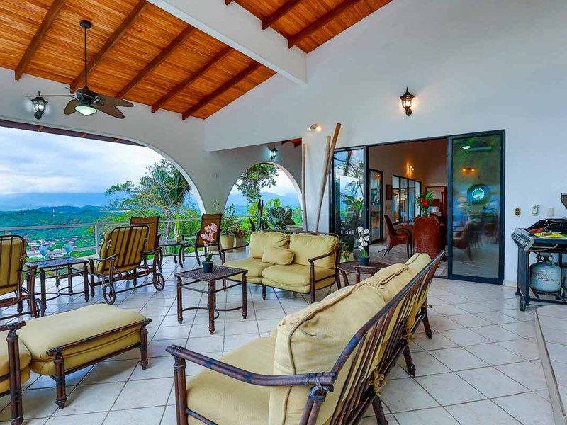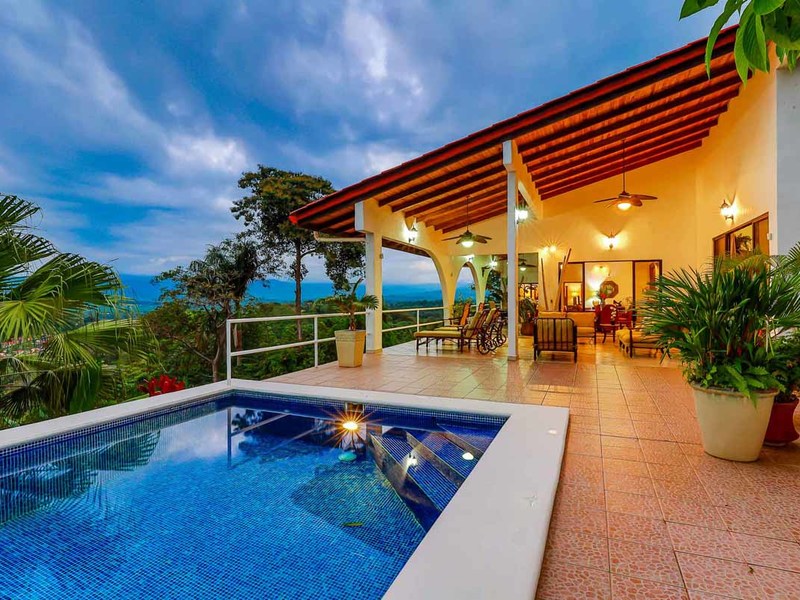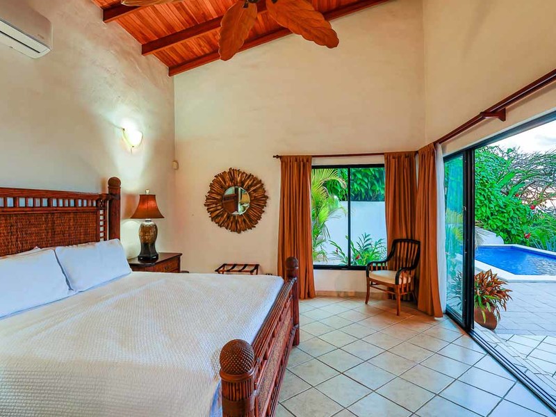 Perhaps the most attractive part of the home is the open floor plan kitchen living and terrace which are made to just sit back, relax and soak in the views and vibe. The spacious living, dining and kitchen are all in a space that can be closed off with a/c or can be opened up to integrate with the huge covered terrace where the is a second outdoor living space. The union of this indoor and outdoor living is what Costa Rica is all about and is where most guests spend their time. The home has one of the larger tiled pools with plenty of terrace space to soak in the sun and enjoy the daily visits from wildlife or just marvel at the panoramic setting.