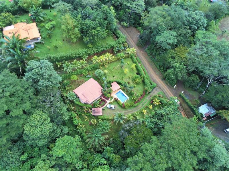 The location makes this house a very attractive option for year-round rentals. The house is located at the highest point of the lot. It is surrounded by mature tropical trees, offering full privacy as well as the possibility of observing tropical wildlife – parrots, toucans, monkeys, and beautiful Blue Morpho butterflies are some of the frequent visitors to this area of Ojochal. The property is surrounded by and immersed in the living tropical trees.