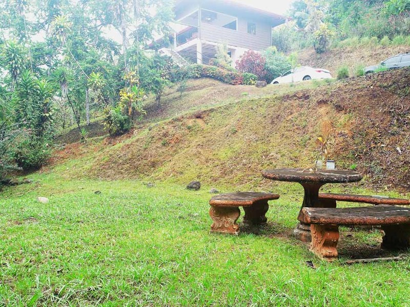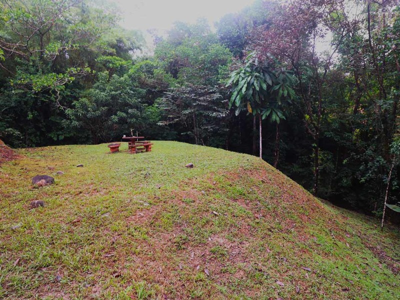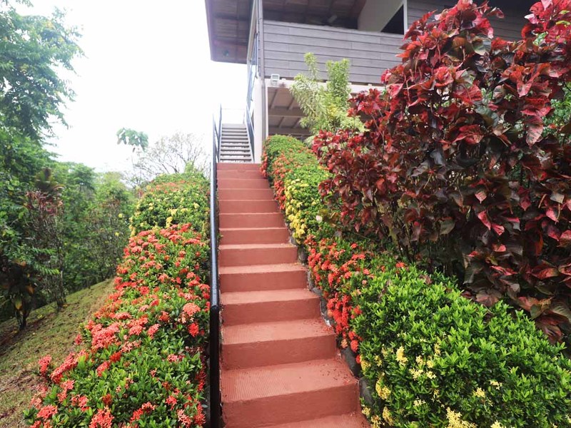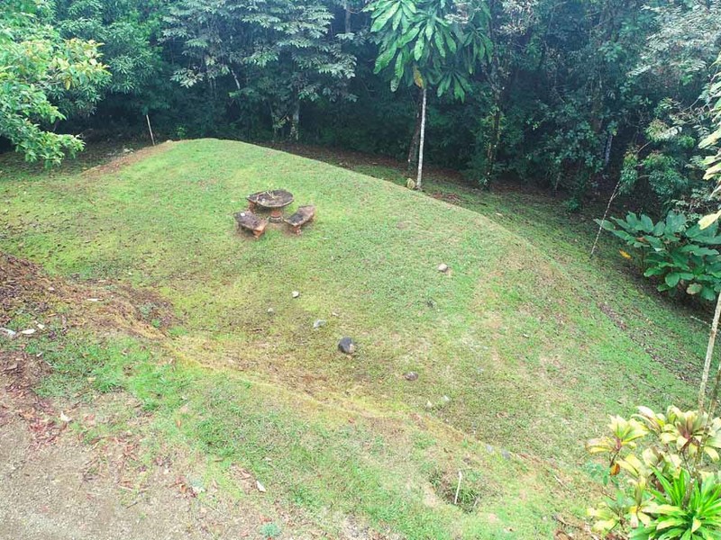 A beautiful garden surrounded by multiple, mature ylang-ylang trees which emit an exquisite perfume in the evenings.