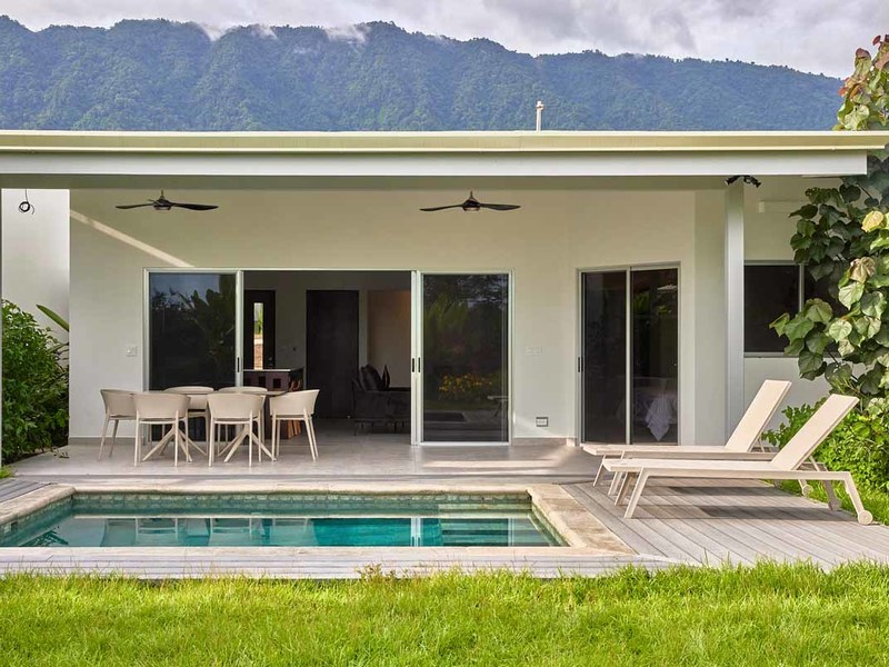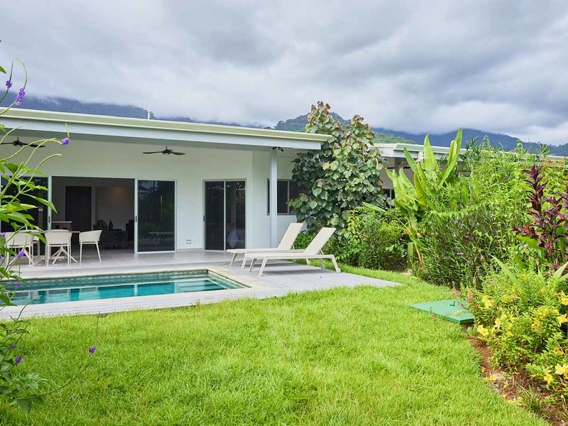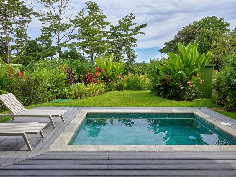 The spacious bedrooms with jungle views are an oasis of comfort and tranquility. The private pool in a lush landscaped garden offers an escape from everyday life, with panoramic views of the nearby mountain range and jungle animal sounds that will take your breath away.