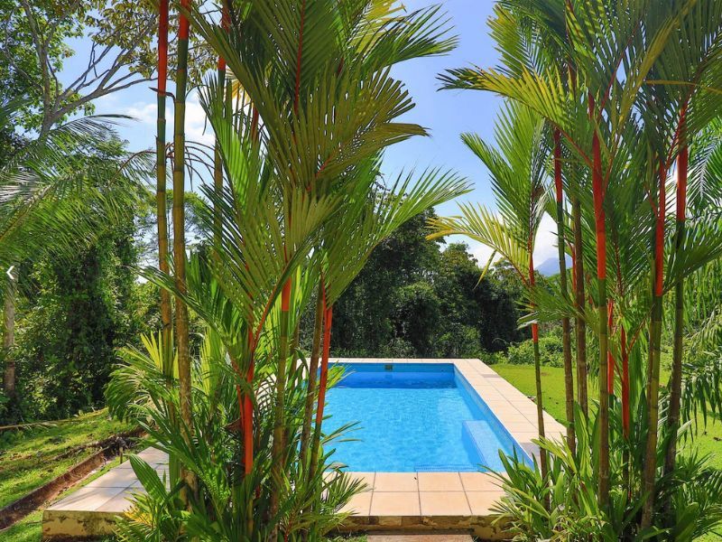 Step out onto the covered patio area boasting a breathtaking view of the surrounding mountains. Witness the mesmerizing sunset or indulge in a delightful family meal. The serene and tranquil setting allows you to relish the enchanting sounds of Costa Rica's nature. Follow the landscaped path to discover a generously sized inviting pool, perfect for the entire family to enjoy while immersing themselves in the mesmerizing jungle and mountain vistas. Keep a keen eye out and you'll surely spot an array of birds and wildlife that call this secluded area their home. Alternatively, embark on a hike to the creek and cool off in the refreshing flowing water.