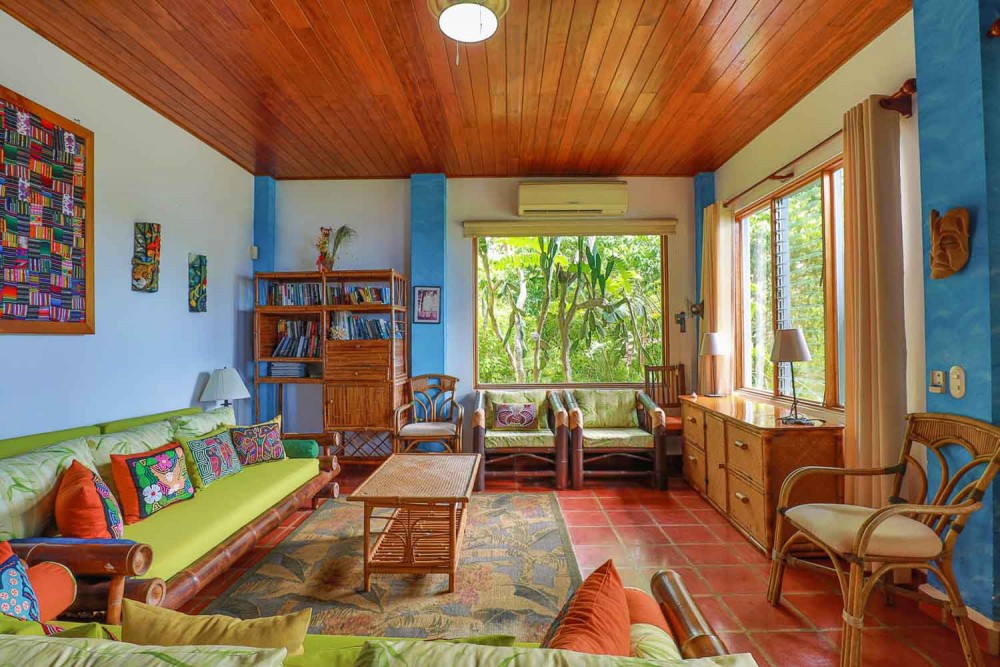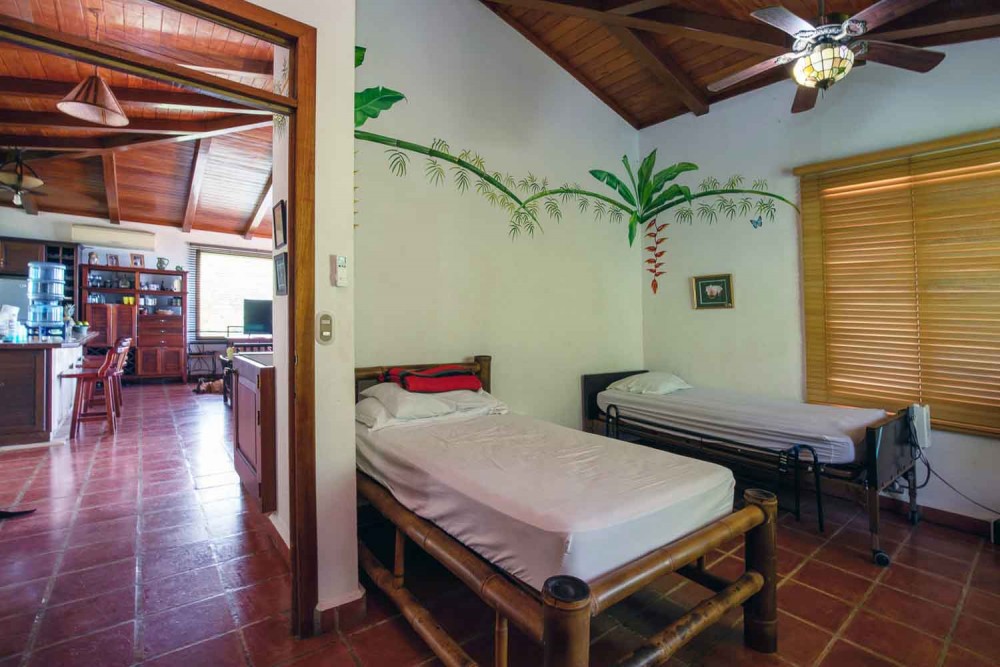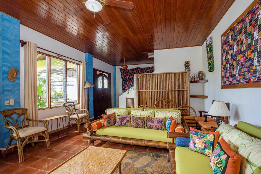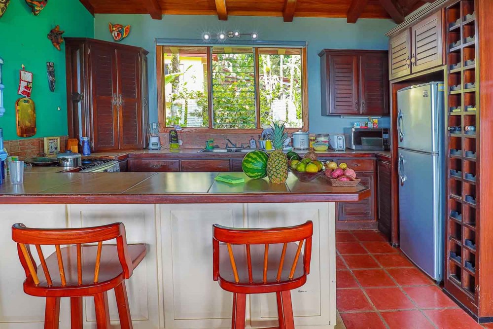 The lower level has a second living area (easily convertible into a third bedroom), another bedroom and another full bathroom. This level has more outdoor living space on the west facing (ocean view) side and also includes a bbq area with a wet bar and outdoor kitchen type of set up. The pool, just a few steps away, is surrounded by mature tropical vegetation and is totally private. The property is fenced, secured and features a security gate. At the top/entry level is a generous parking area with a covered stall. Adjacent to the parking area is two level guest home with charming finishes, a full kitchen, a cozy back porch and a second level which encompasses an ocean view terrace, bedroom area, a full bathroom and generous storage.