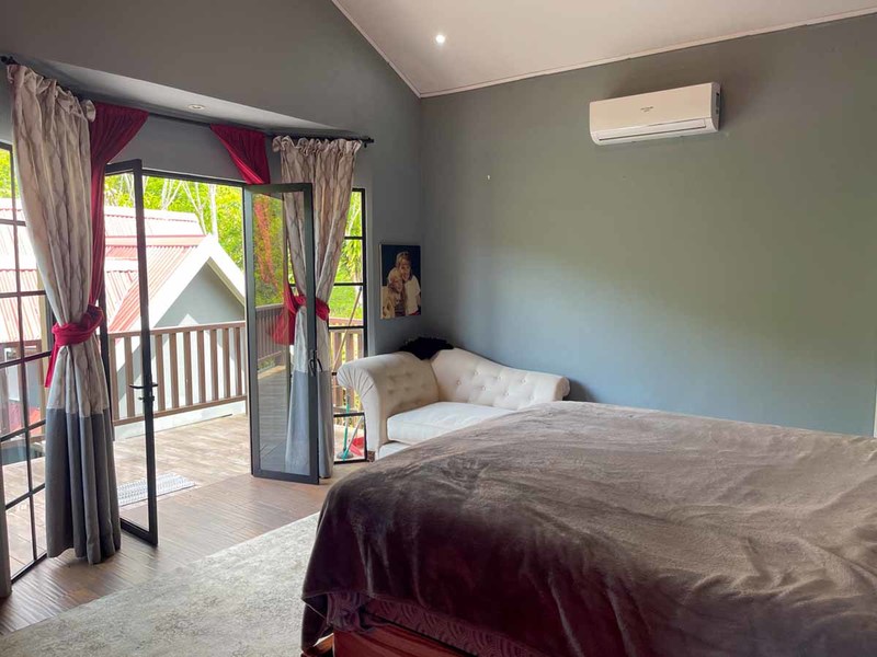 The master bedroom, which has an ensuite bathroom and a balcony that provides excellent views of the majestic mountain range, offers a scenic escape unto itself. The guest and office/bedroom are just as impressive as the master, with a cozy and comfortable atmosphere that ensures a relaxing stay. These bedrooms share an adjoining guest bathroom, ensuring that guests have their own private retreat.
