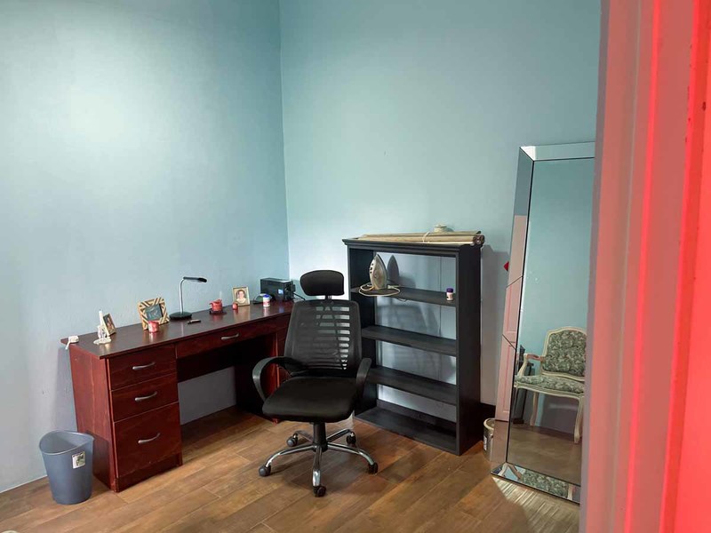 The covered rancho in this beautiful home is perfect for outdoor entertainment. The rancho features a barbecue, full bathroom, and sitting areas, providing ample space for those who want to enjoy the fresh air and stunning views while entertaining guests. It is a space that seamlessly blends indoor and outdoor living, making it perfect for those who appreciate both.