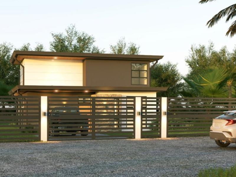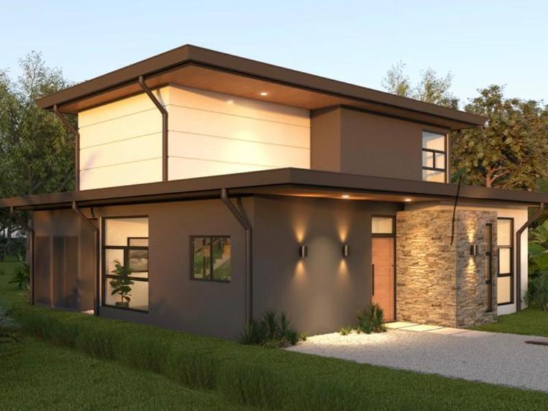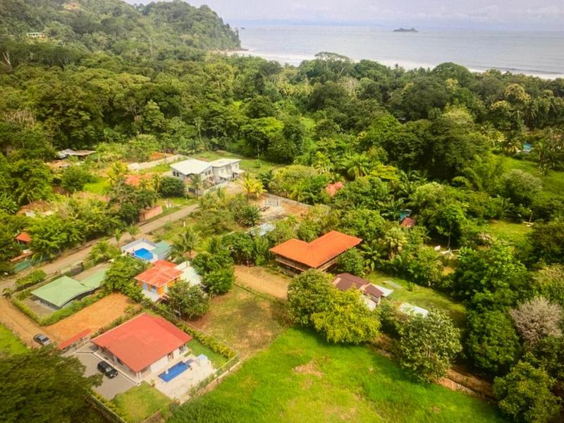 This brand new modern style 3 bedroom home is currently being built in a great community walking distance to the Whales Tale National Marine Park (Parque Nacional Marino Ballena) which has the famous whales tale and is one of the most spectacular beaches in the world. You can also walk to several restaurants and stores near the entrance to the park. The location makes it a great place to live and also a great place for a vacation rental business. The property also backs onto a large green open space that butts directly up to the beach. The scarlet macaws are seen flying around daily!!!