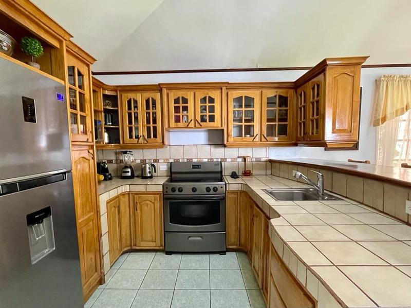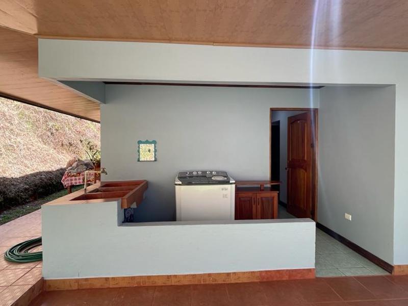 After you drive up the 100 foot long driveway from the main public road, you arrive at the house and the welcoming outdoor terrace with plenty of room for a living room or dining set up. Just inside the door the large kitchen and additional living space is completed with a breakfast bar for friends to gather while you enjoy creating delicious dishes from the local ingredients found close by at the area's organic farmers markets, and even from your own property. Outfitted with artisan-made teak cabinets and tile countertops round out the care taken to make this a home to enjoy and appreciate. All appliances are included.