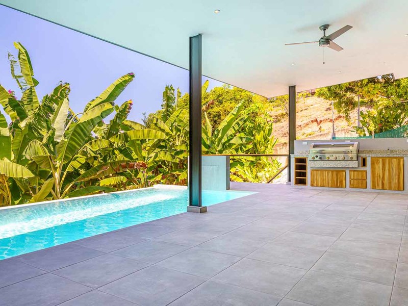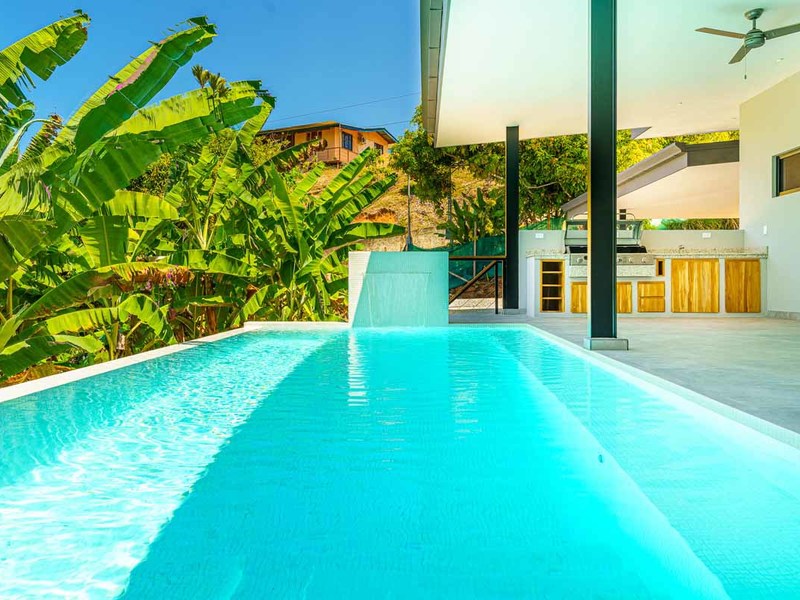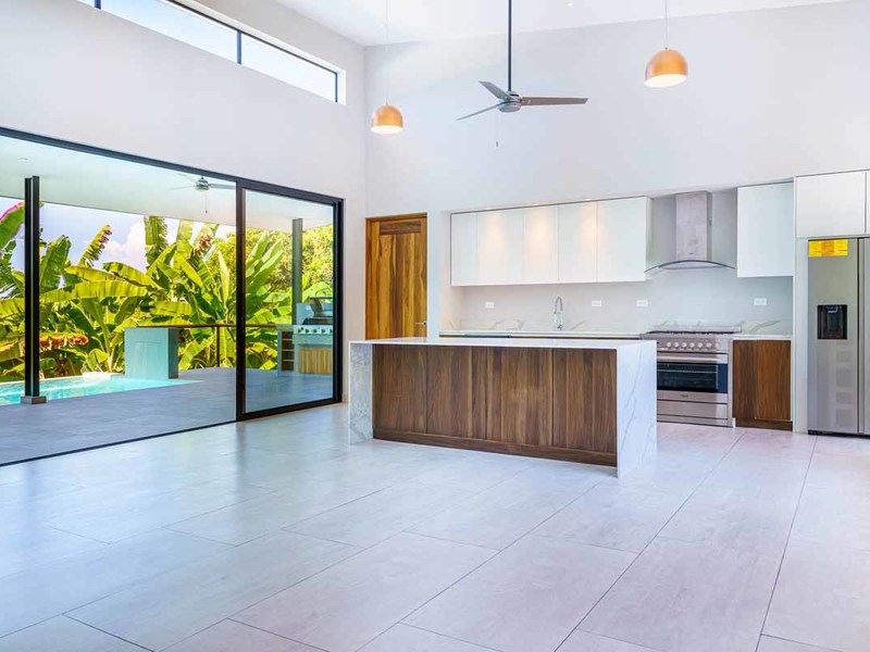 Located within walking distance to restaurants, BM grocery store, bakery, bank, stores, and local tours! If you're looking for all the amenities, but want to enjoy those ocean breezes this one is for you! As you enter the two-car garage everything has been thoughtfully designed. A full laundry area is situated conveniently as you enter the home to throw off those sandy clothes and wash up! A very large pantry follows next, no need to worry about where to store your local artisan goodies! A tastefully decorated chef's kitchen is just what you want to create a masterpiece from the local produce....plenty of room for entertaining as you whip up the divine flavors of the region, or simply hire the many professional chefs from the area. If the large kitchen and living room aren't enough, this home boasts a spacious covered outdoor living and dining area in front of the well-sized swimming pool! Your guests will be in heaven. The master bedroom is just steps away and enjoys the same beautiful views as the main area. His and her closets, separate water closet andoversizedd walk in shower! The designer also thought to add a separate entrance out to the back gardens from the master suite. Genius! Located to the rear of the home is an additional 2 bedrooms for family or friends in a split floor plan allowing for space and privacy.
